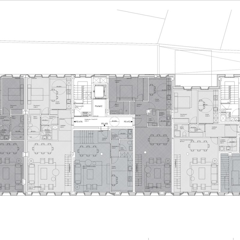 Residencial Cornes està situat en el barri residencial de moda a Santiago. Destaca la qualitat del projecte arquitectonico realitzat pels arquitectes Carbajo & Barris que han cuidat les distribucions aconseguint habitatges de gran qualitat que donen a dues façanes.