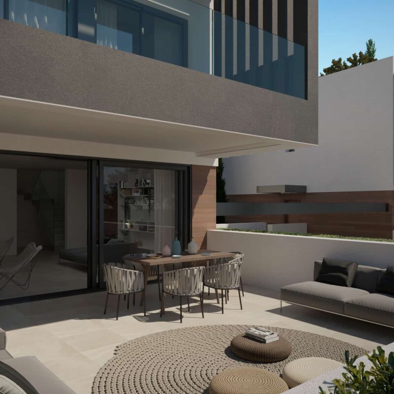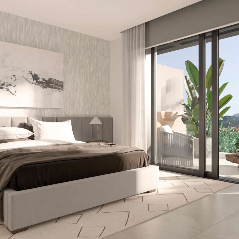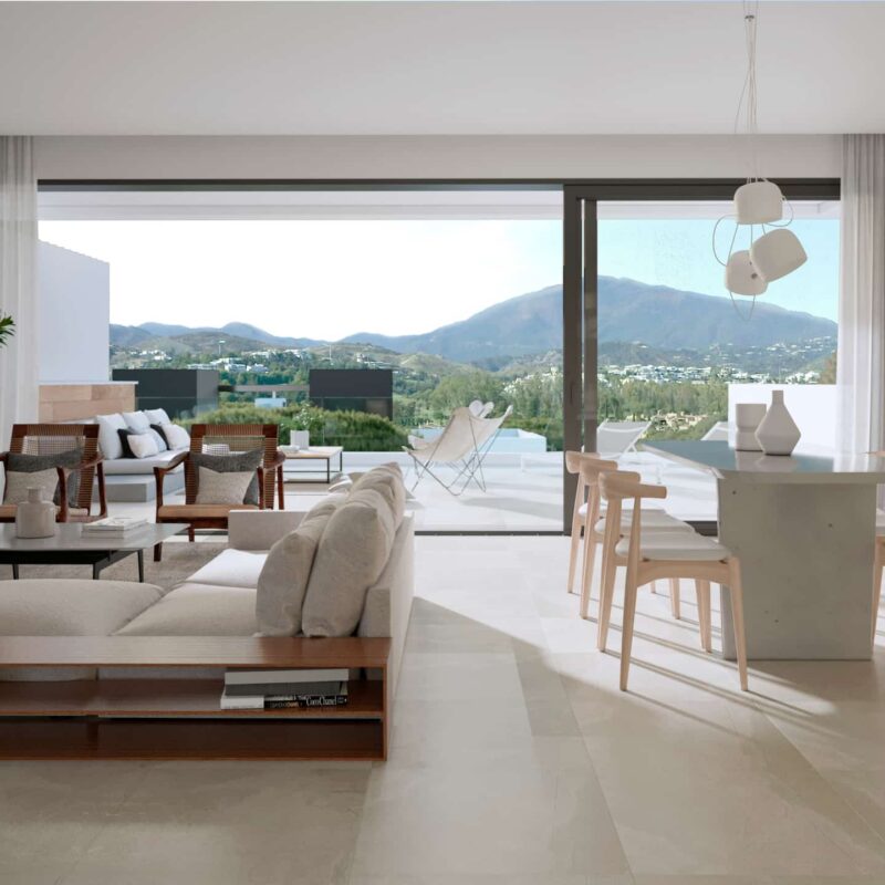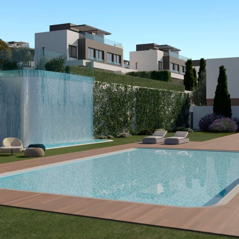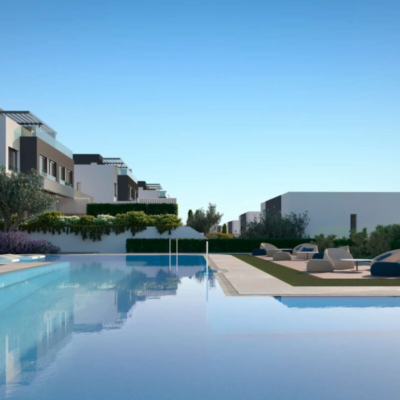 50 viles adossades de 2 o 3 dormitoris amb opció de solàrium i soterrani. Els habitatges gaudeixen d'una orientació oest bé assolellada, a més, la seva disposició al llarg d'una suau vessant permet aprofitar a el màxim unes vistes magnífiques. La seva ubicació, al costat de l'Talaia Golf & Country Club, pròxima a zones comercials i amb Puerto Banús a un pas, és ideal per a famílies que busquin un habitatge independent amb jardí sense renunciar a estar ben connectat amb els millors serveis de la Costa de Sol.