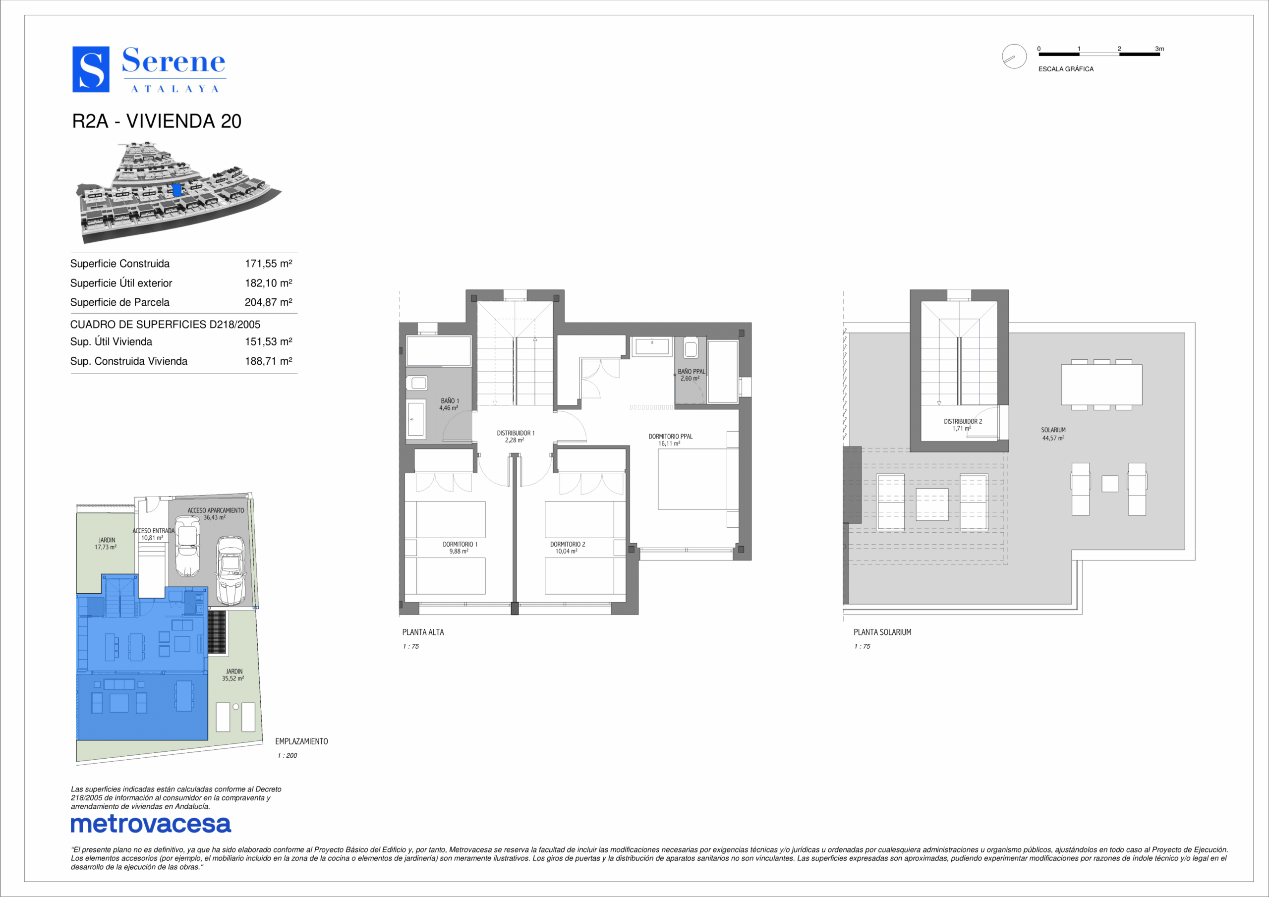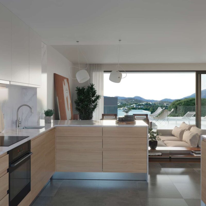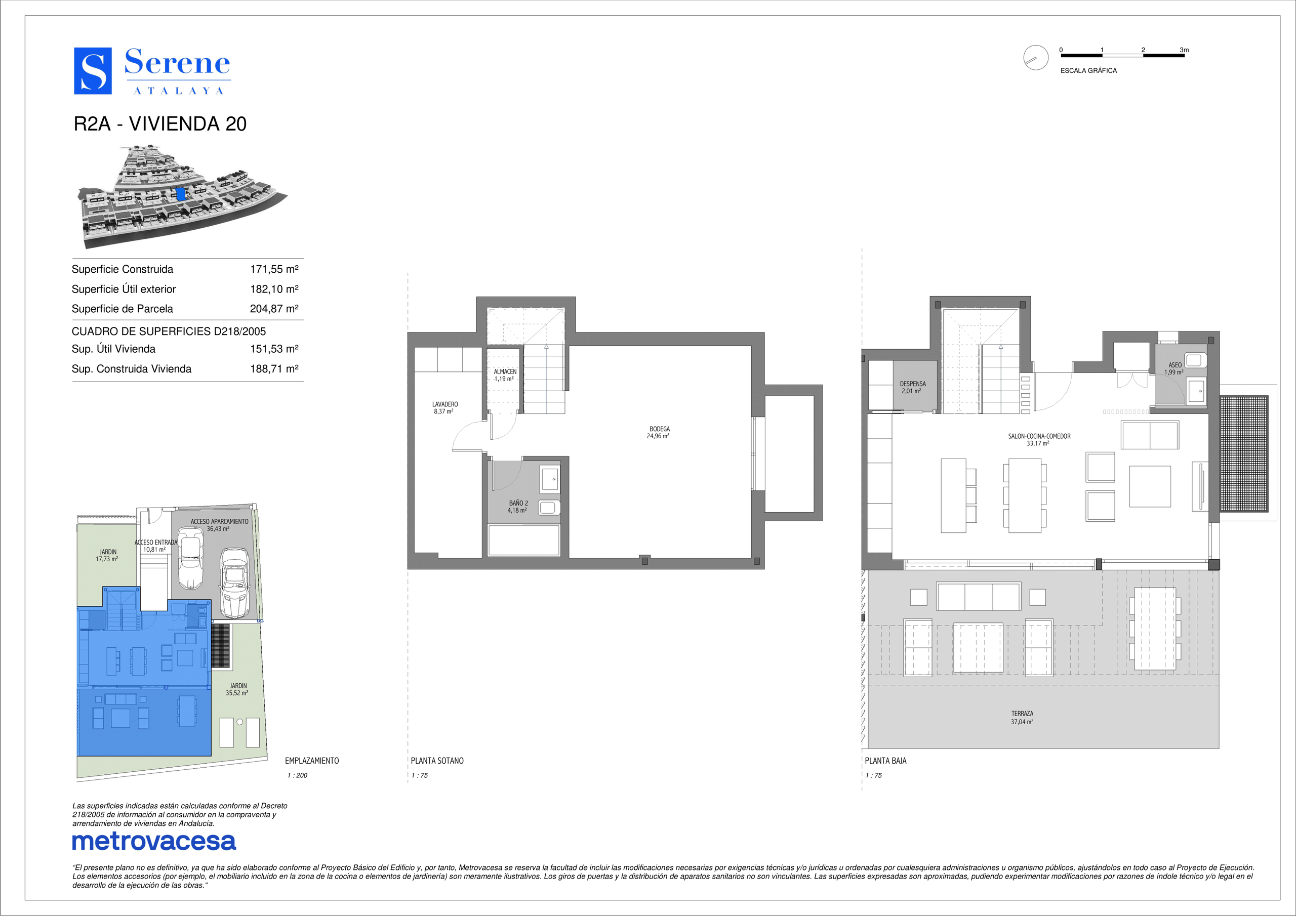 50 viles adossades de 2 o 3 dormitoris amb opció de solàrium i soterrani. Els habitatges gaudeixen d'una orientació oest bé assolellada, a més, la seva disposició al llarg d'una suau vessant permet aprofitar a el màxim unes vistes magnífiques. La seva ubicació, al costat de l'Talaia Golf & Country Club, pròxima a zones comercials i amb Puerto Banús a un pas, és ideal per a famílies que busquin un habitatge independent amb jardí sense renunciar a estar ben connectat amb els millors serveis de la Costa de Sol.