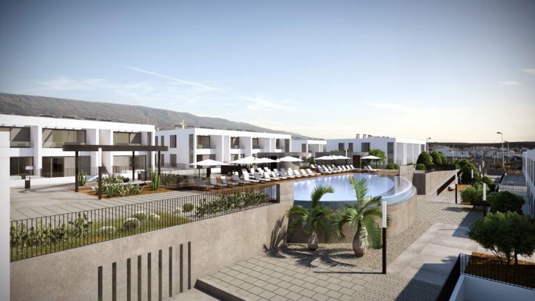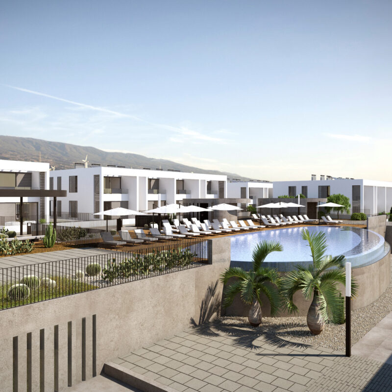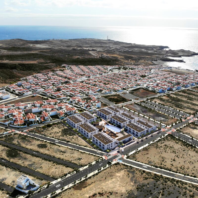 Urbanització residencial de nova construcció de 74 habitatges de 2 i 3 dormitoris, garatges i trasters; amb piscina, solàrium i jardins comunitaris.
