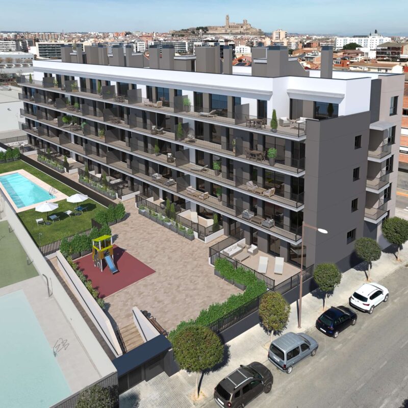 Discover how the works of ICONIC are progressing, the upcoming project in Lleida, right in the heart of the La Bordeta neighborhood and just a few steps from Parc de l’Aigua.
