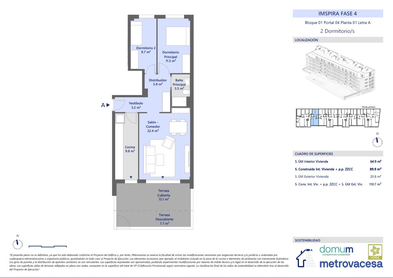 * El ahorro económico y energético mostrado en esta simulación es puramente informativo, por lo tanto, Metrovacesa no tiene ninguna responsabilidad ni obligación sobre dichos resultados. El cálculo se ha hecho basado en los datos incluidos en el documento "Calificación de la eficiencia energética de los edificios" versión 1.1 de Noviembre de 2015, publicado por el IDAE. Ministerio de Industria, Energía y Turismo.