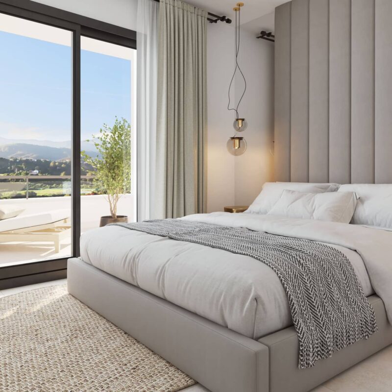 Oceana Gardens I, a development of 52 exclusive 2 and 3 bedroom multi-family homes located in the privileged setting of Estepona's Golden Mile. Its avant-garde architecture is combined with the benefits of its communal areas with outdoor swimming pool and coworking area, equipped gym, two petanque courts, cyclosenda and access to the Club House, exclusive for residents.