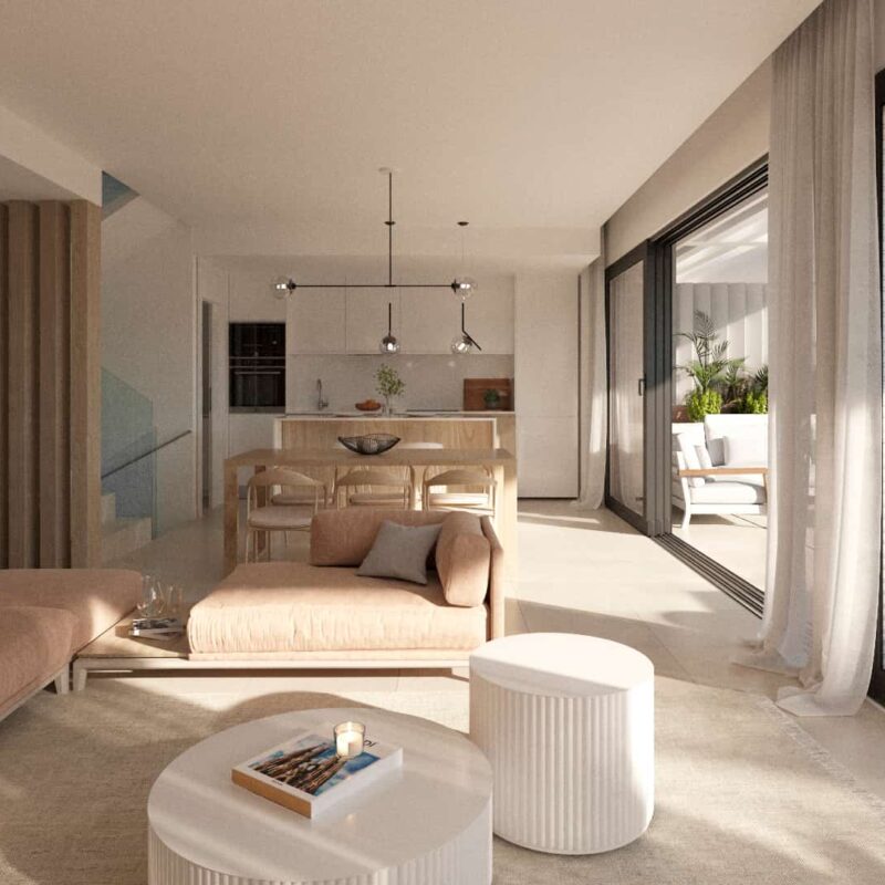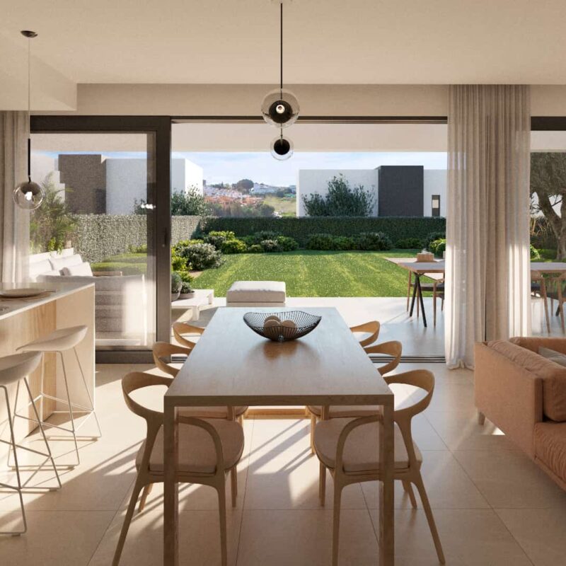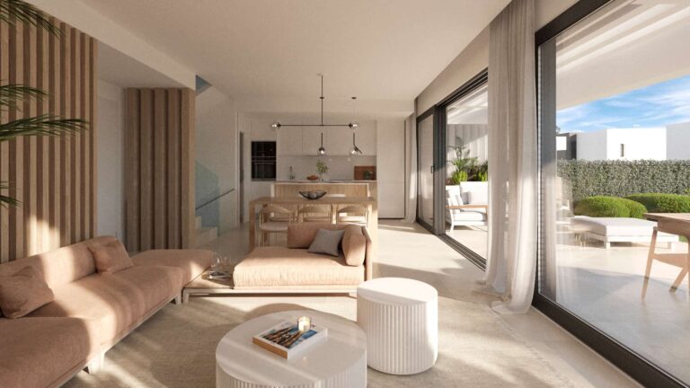 50 semi-detached villas of 3 bedrooms with option of solarium and basement. The properties enjoy a very sunny west orientation, in addition, its layout along a gentle slope allows you to make the most of magnificent views. Its location, next to the Atalaya Golf & Country Club, close to shopping areas and with Puerto Banus within walking distance, is ideal for families looking for a detached house with garden without giving up being well connected to the best services of the Costa del Sol.