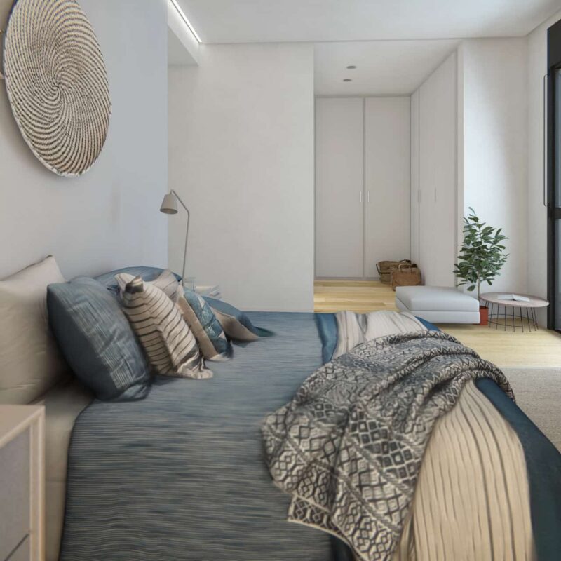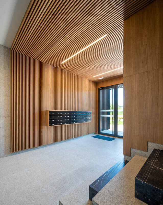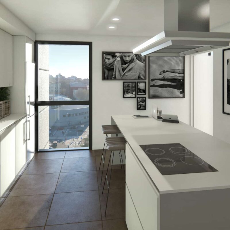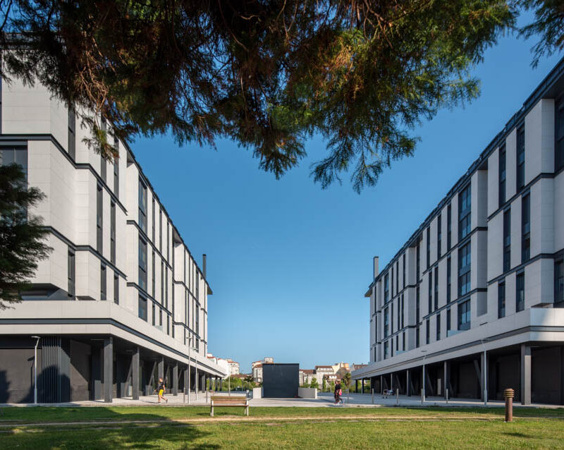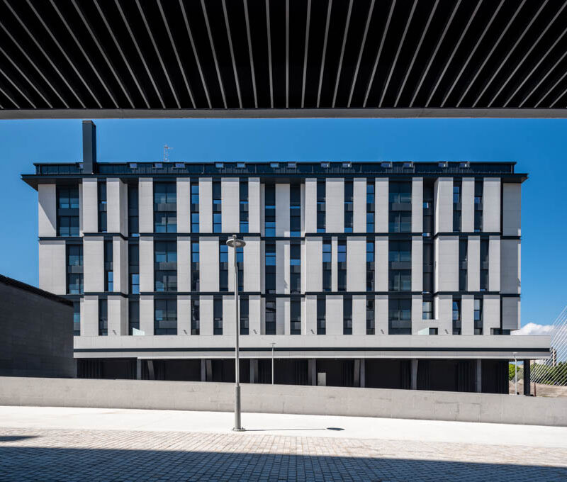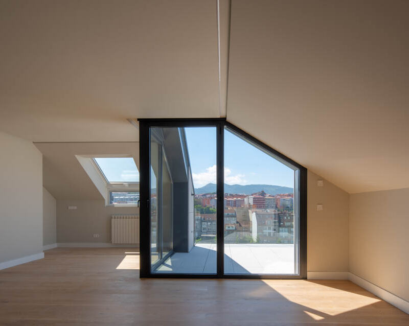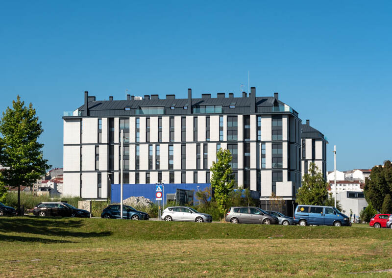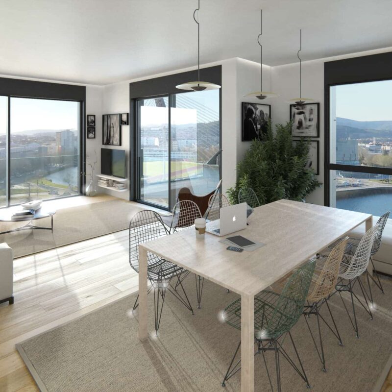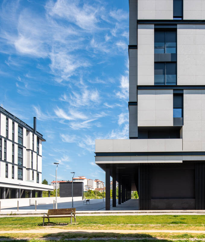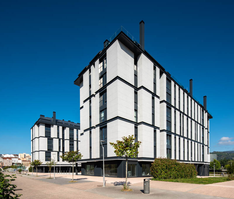 Residential complex of 91 homes of 1, 2, 3 and 4 bedrooms with impressive penthouses with terraces. It consists of 2 buildings of 8 floors (B.P.+6 + penthouse) located next to the Lérez river and with magnificent views of the estuary. The homes will have parking spaces and storage rooms and will be equipped with excellent communal services (heated swimming pool, gym, social and gourmet lounge).