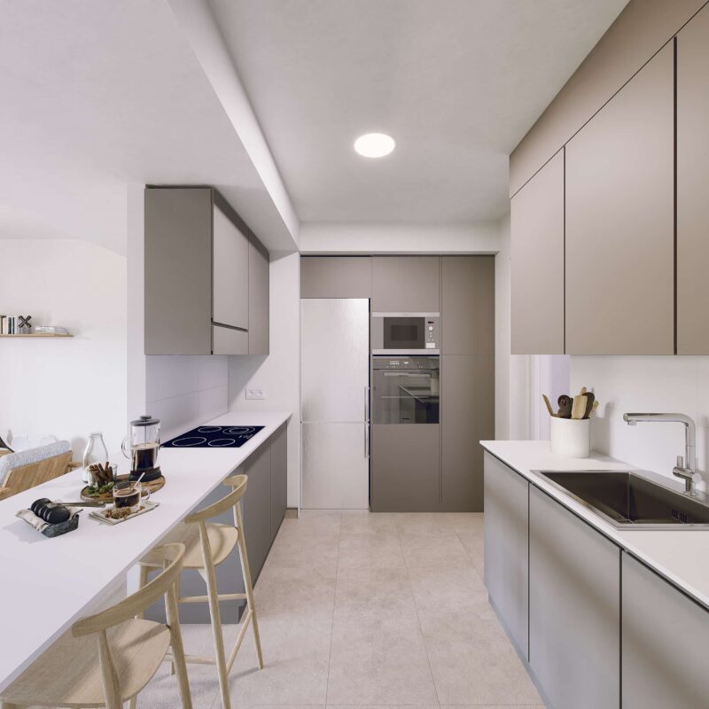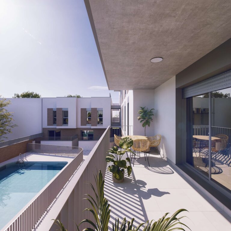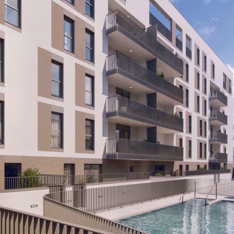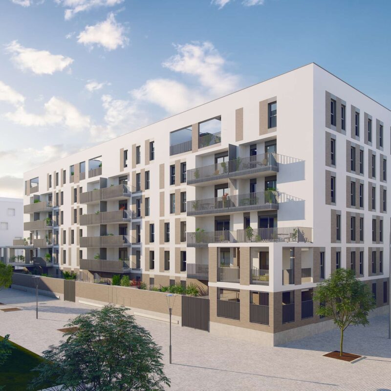 Residencial Sierra Morena, Metrovacesa's second development of LIMITED-PRICE PROTECTED HOUSING in Isla Natura (Seville), a development under the VIVE PLAN in Andalusia, for housing, rehabilitation and urban regeneration in Andalusia 2020-2030. 68 new multi-family homes with garages and storage rooms. 2, 3 and 4-bedroom homes. The building is located in a unique natural environment, ISLA NATURA, south of Los Bermejales, in a large corridor that will be part of the green ring of the city. The residential is developed on first floor plus five floors, and has communal areas that include a swimming pool. Below ground level there are parking spaces with direct access from the portals and storage rooms. The homes are sold together with a parking space and storage room (included in the price). Essential access requirement: to be registered in the Municipal Registry of Applicants for Subsidized Housing of Seville and meet the requirements. Contact us for more information. Enjoy a new way of living in Seville, in a sustainable and quiet environment, with fast communications.