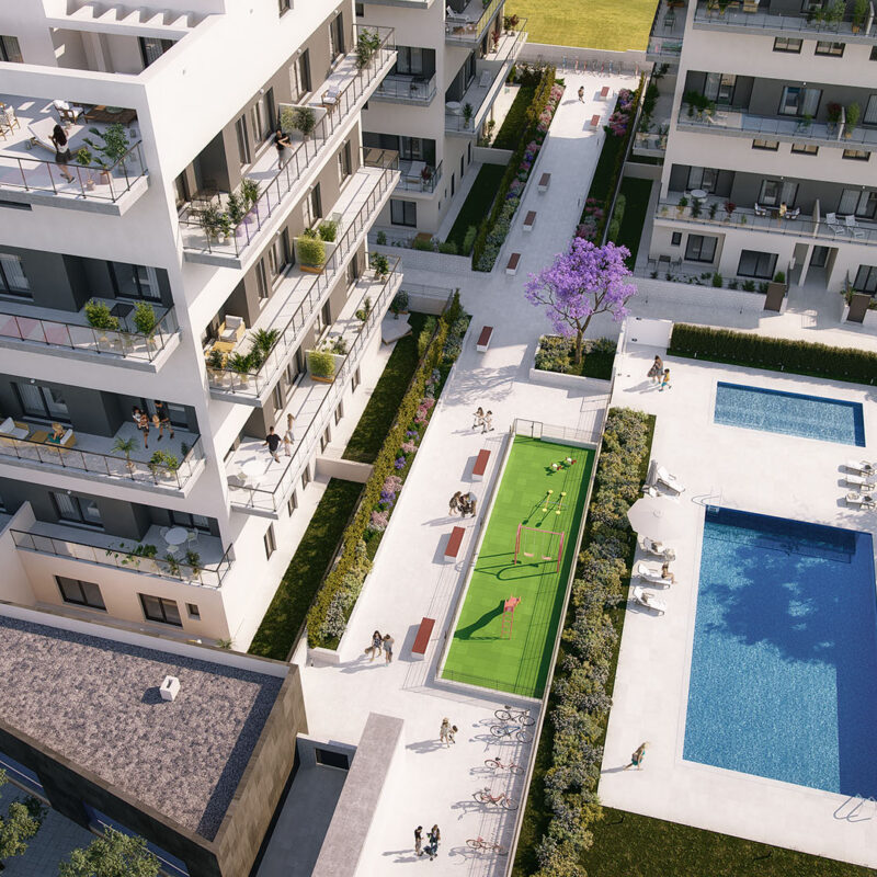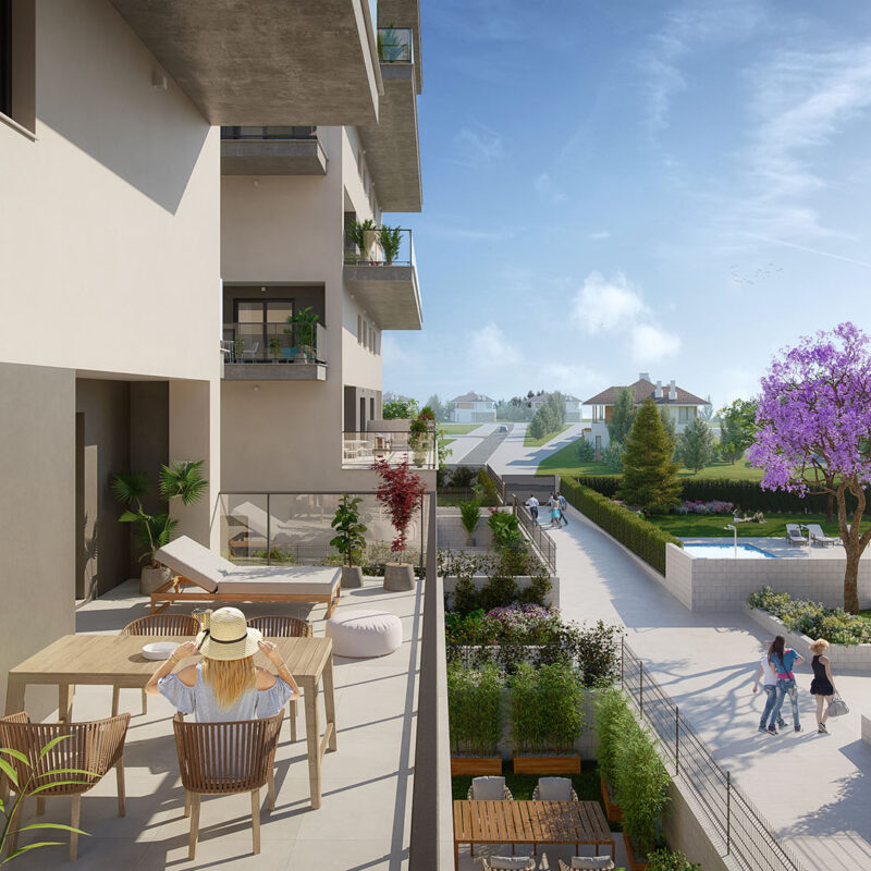 This development stands out for its terraces and well-kept spaces, created for all families to enjoy the climate, the environment and the orientation of this residential. Each home has a large terrace, with different views.