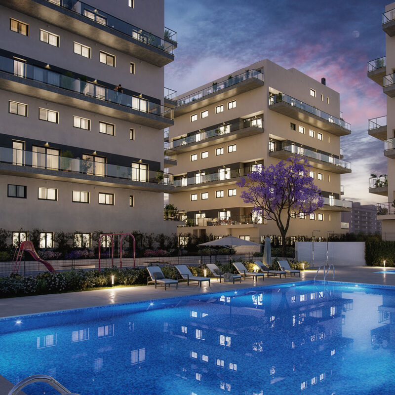 Homes in Puerto de Sagunto with 2, 3 and 4 bedrooms, with large terraces, communal pool, gardens and playground.
