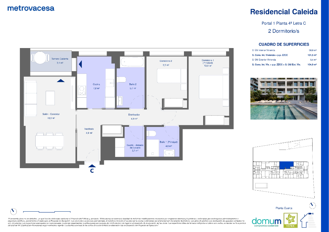 | 4 | 2 | 2 | 104.7 * | 3.4 | Ver plano | 304.600 € *** |