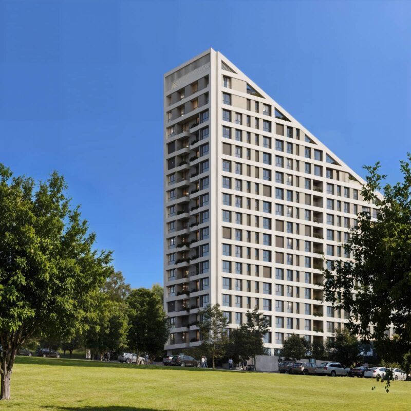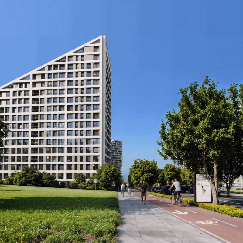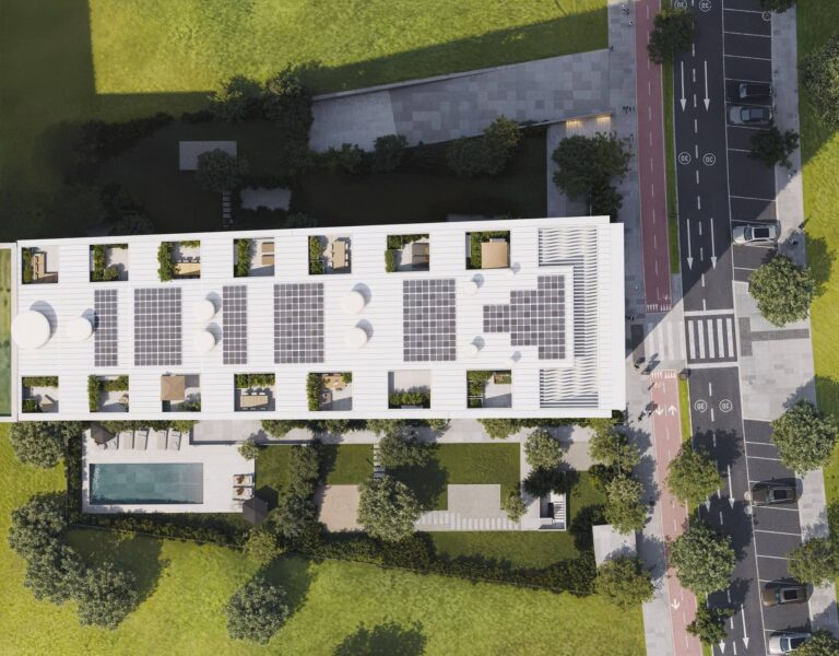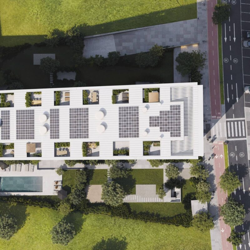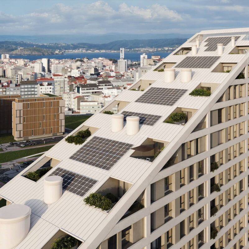 El edificio, diseñado por Álvaro Romero del estudio ARA arquitectos, cuenta con 100 viviendas con terraza y con tipologías de 1, 2, 3 y 4 dormitorios, todas ellas con garaje y trastero incluido.
