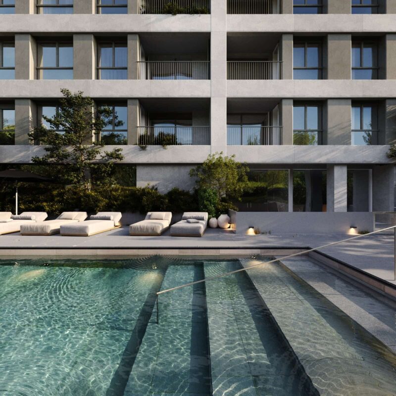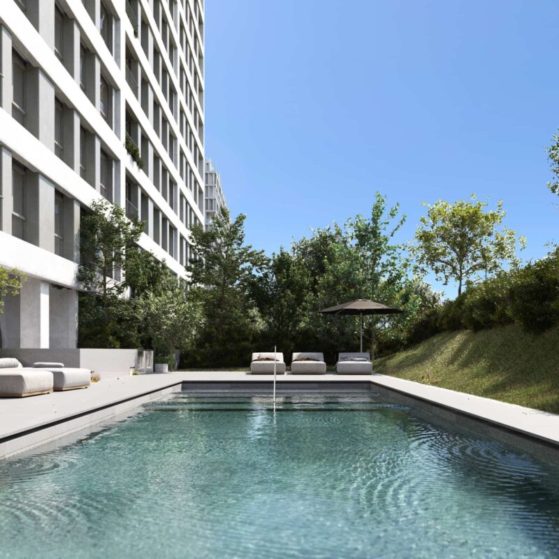 Un oasis de tranquilidad. Relájate y disfruta del sol junto a nuestra piscina, diseñada para que cada día se sienta como vacaciones. Calidad de vida en tu nuevo hogar.