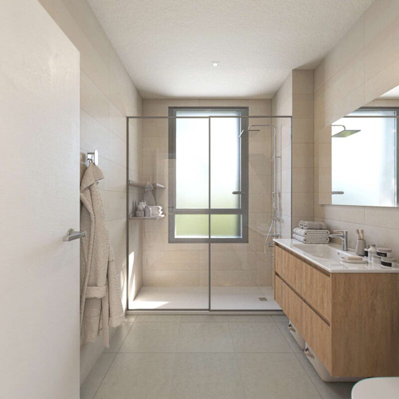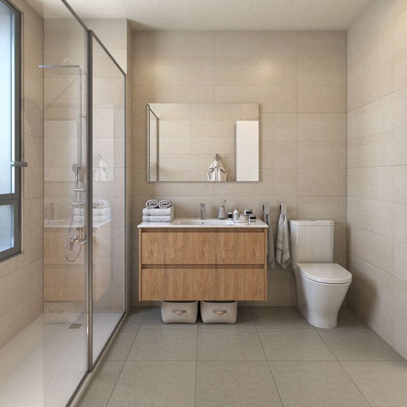 Un espacio privado para tu bienestar. Baños con acabados modernos y elegantes, donde cada detalle está pensado para tu comodidad.