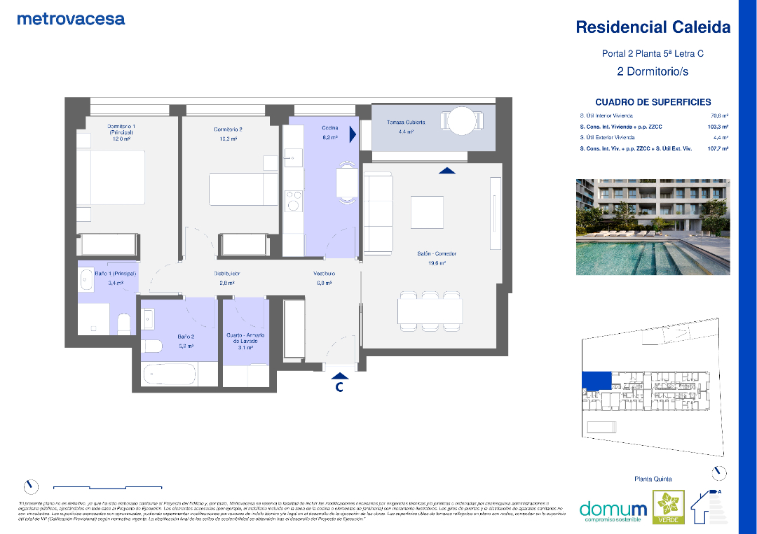 | 5 | 2 | 2 | 107.7 * | 4.4 | Ver plano | 326.700 € *** |