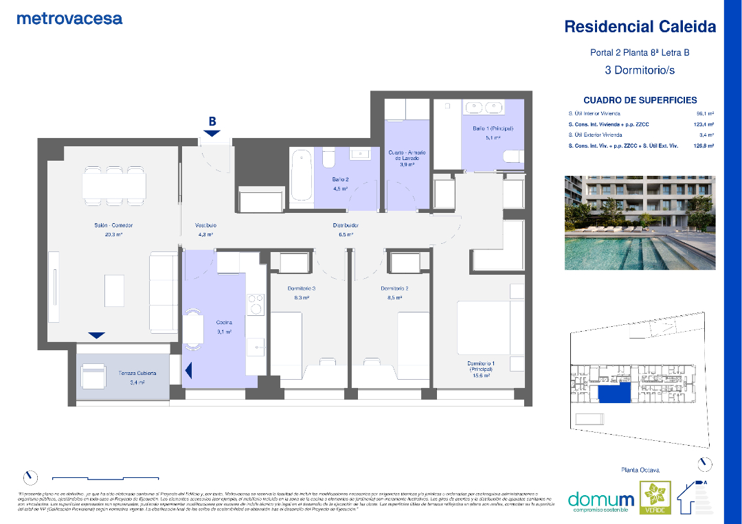 | 8 | 3 | 2 | 126.8 * | 3.4 | Ver plano | 418.400 € *** |