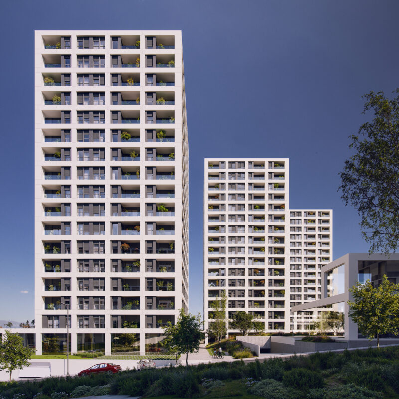 En A Coruña, en el nuevo barrio de San Pedro de Visma, se encuentra Torre Aura. Un complejo de 18 alturas y 96 viviendas, todas ellas con terrazas. Las viviendas han sido diseñadas para generar espacios amables, aprovechando al máximo la luz del entorno.