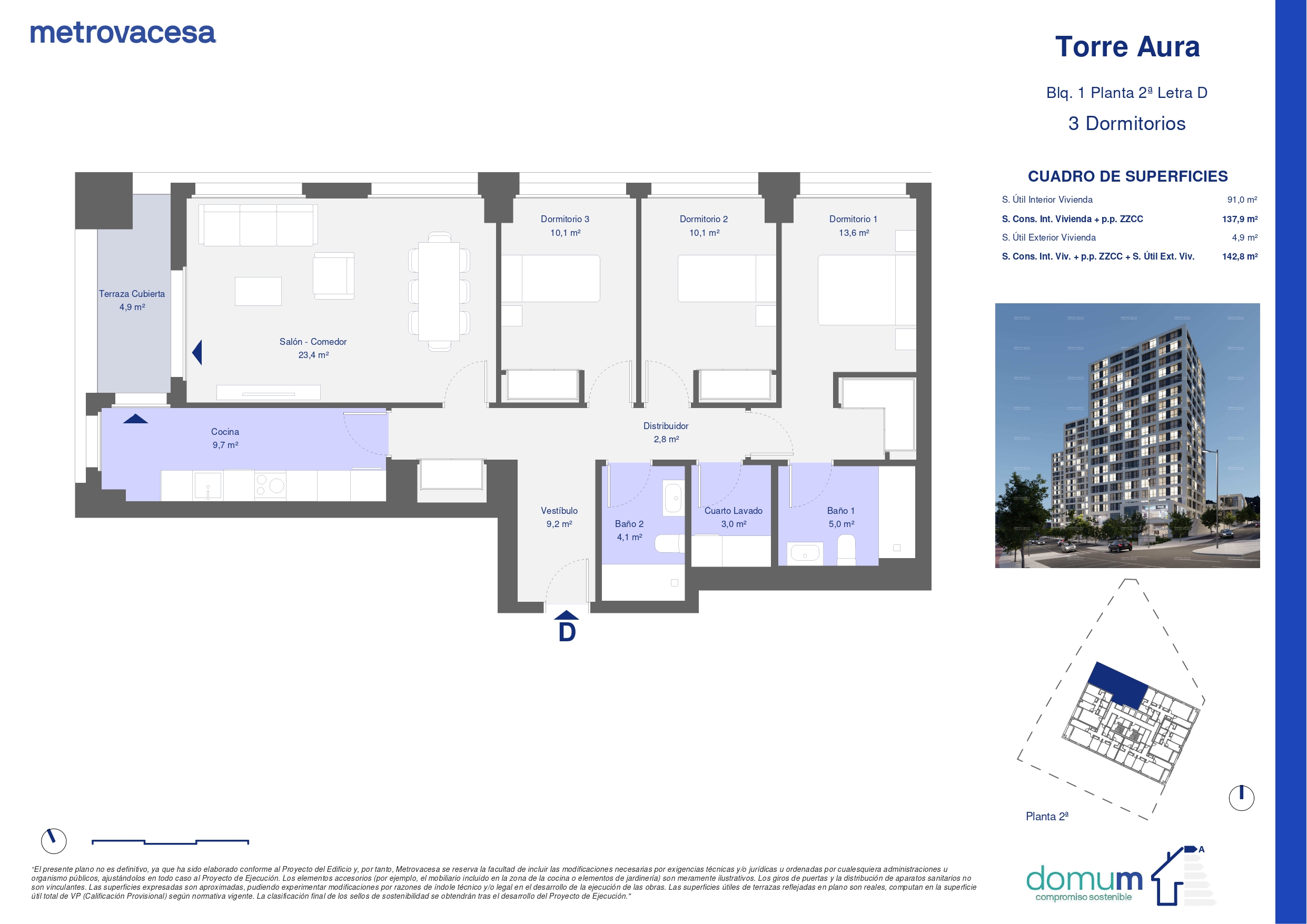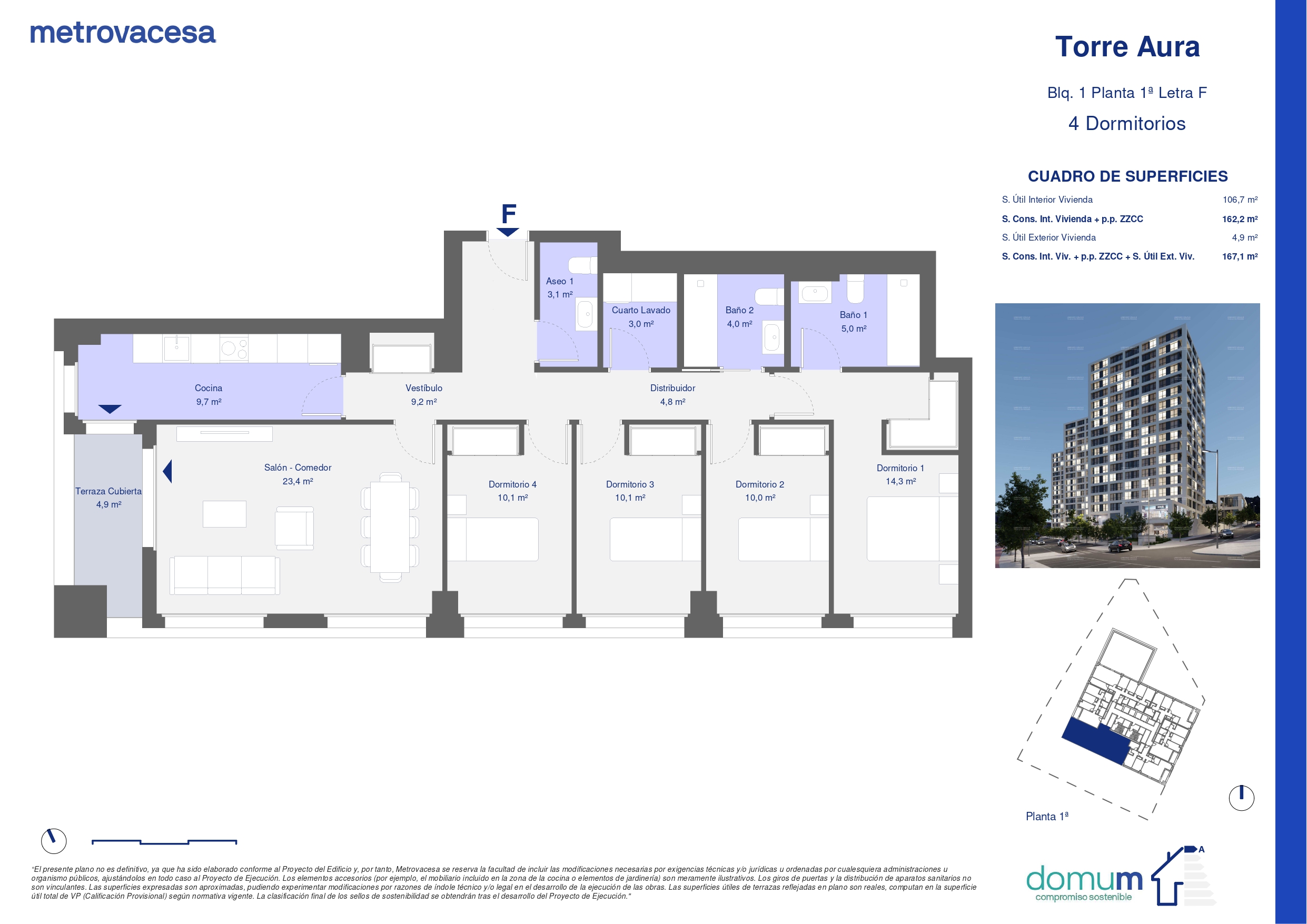 Con opciones de viviendas de 2, 3 y 4 dormitorios, con 2 plazas de garajes, trastero y una gran variedad de tamaños y orientaciones, Torre Aura se ajusta perfectamente a las demandas únicas de cada hogar.