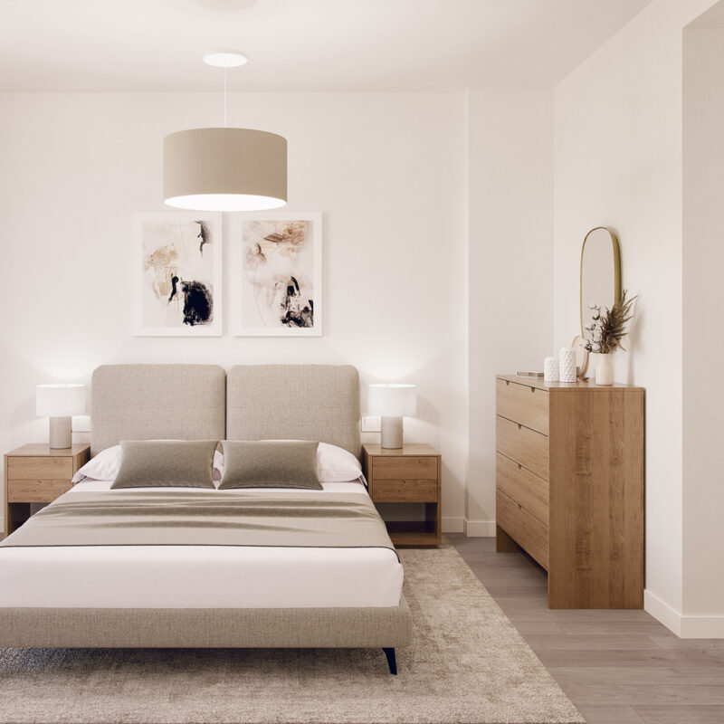 Un espacio de descanso que invita al confort. Habitaciones pensadas para tu bienestar, con acabados de alta calidad y diseño moderno. Despierta cada día en tu nuevo hogar Metrovacesa.