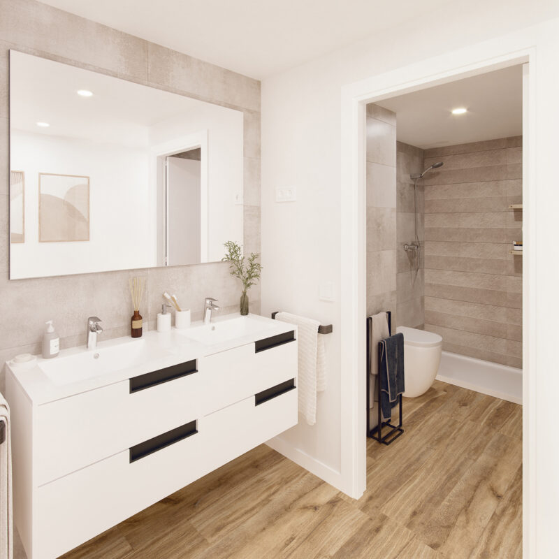 Un espacio privado para tu bienestar. Baños con acabados modernos y elegantes, donde cada detalle está pensado para tu comodidad.