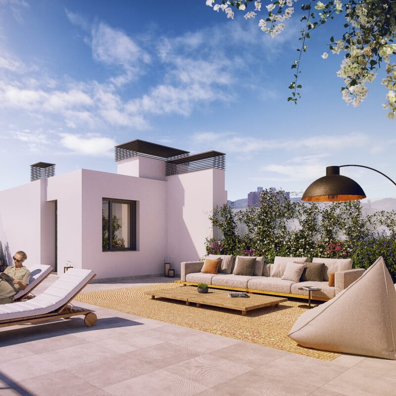 Tu rincón al aire libre. Vive el confort en magníficas terrazas diseñadas para brindarte el espacio ideal donde desconectar y relajarte. El lugar perfecto para disfrutar del aire fresco, convirtiendo cada momento en una experiencia de bienestar.