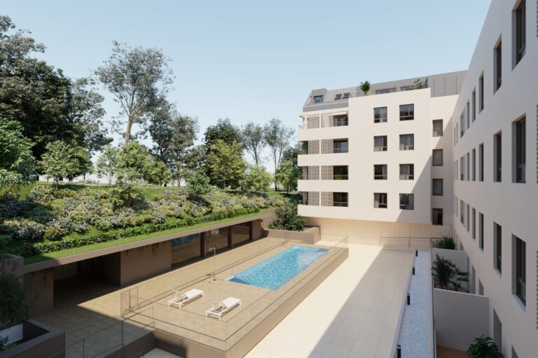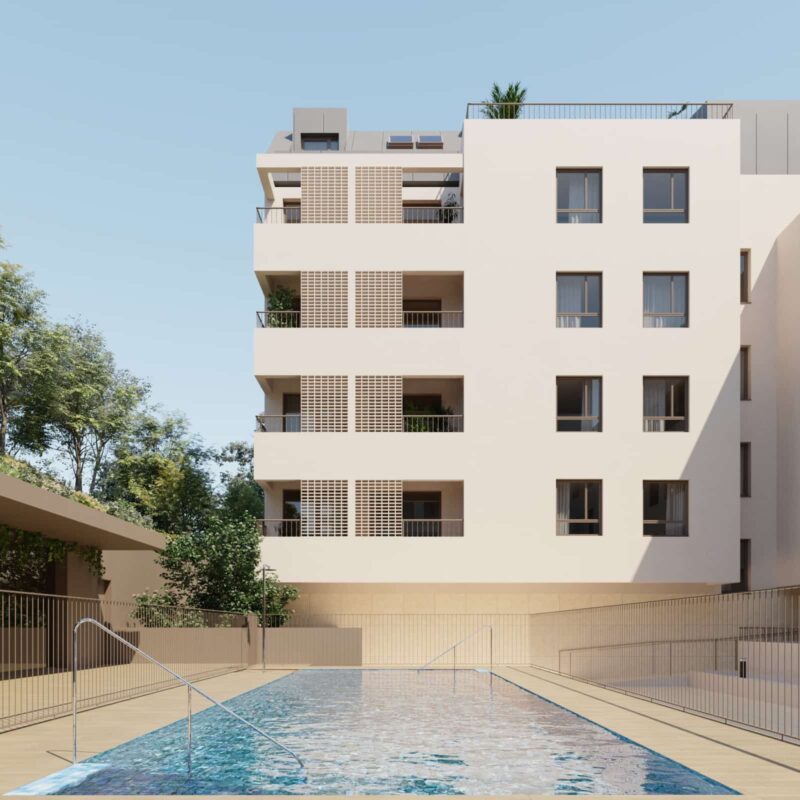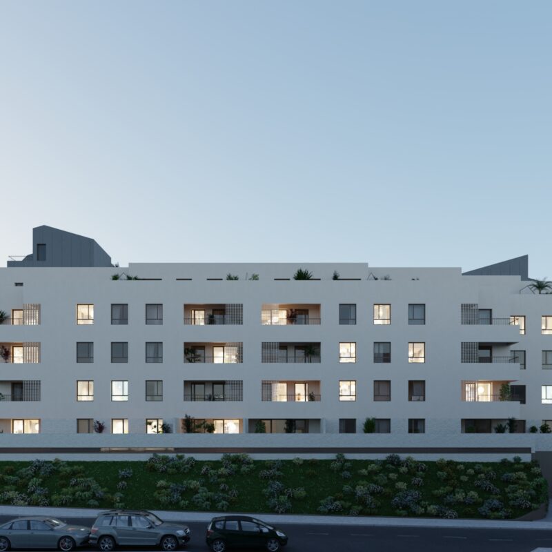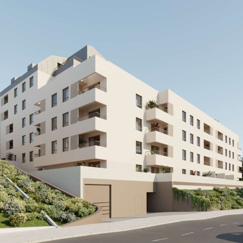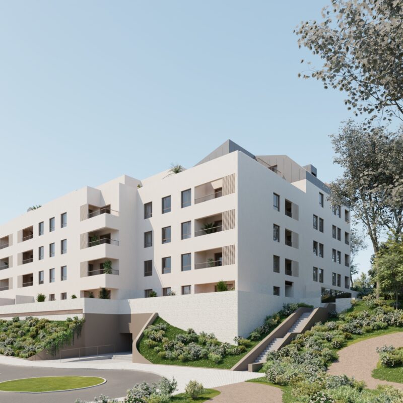Promoción de 64 viviendas de 2 y 3 dormitorios con amplias terrazas y áticos con vistas a urbanización privada con zonas verdes, sala comunitaria, piscina y gimnasio.