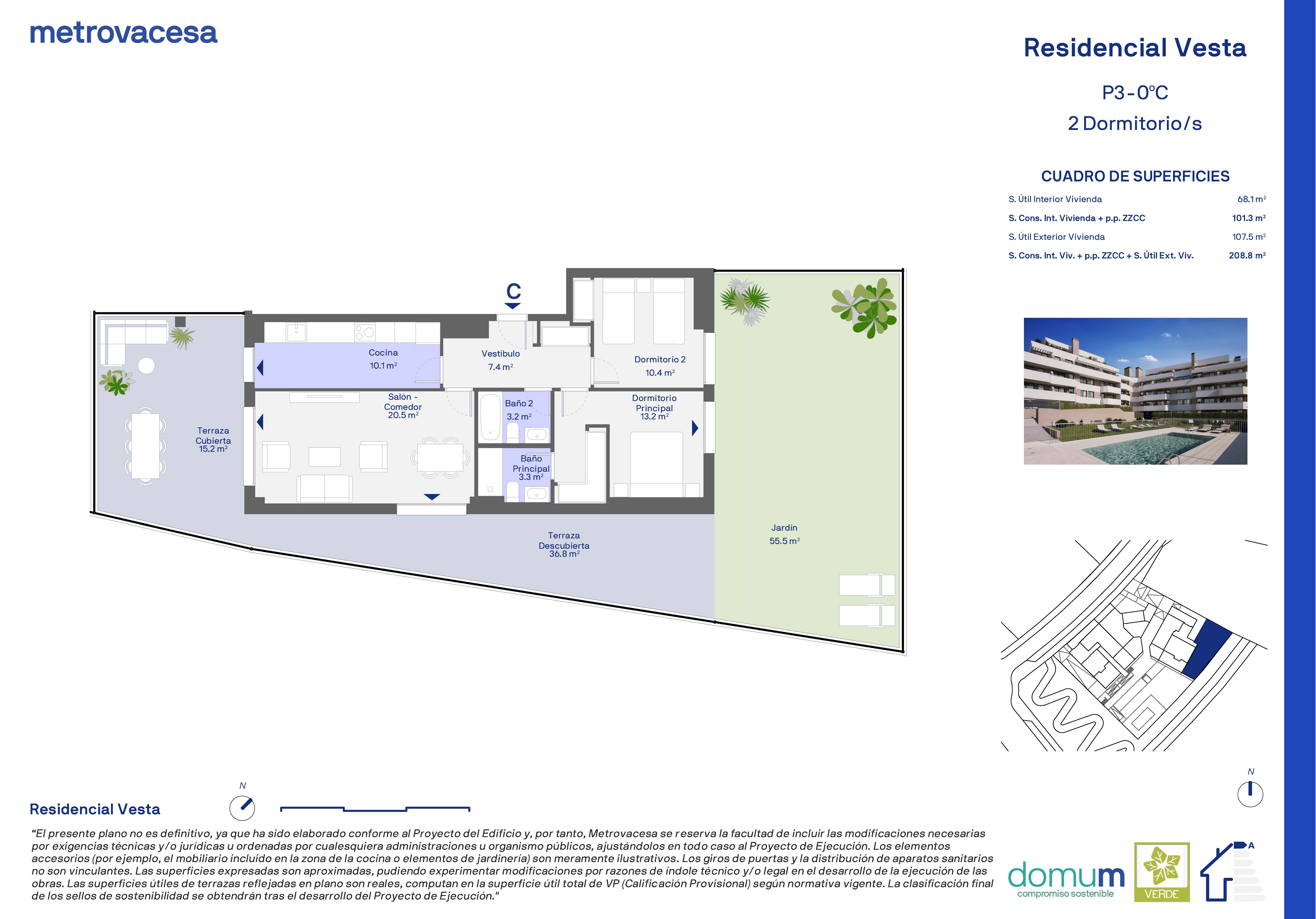 Residencial Vesta cuenta con una excelente orientación al sur, lo que facilita el confort y la calidez de sus viviendas, así como la eficiencia energética de las mismas.