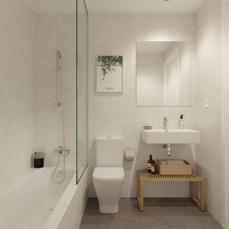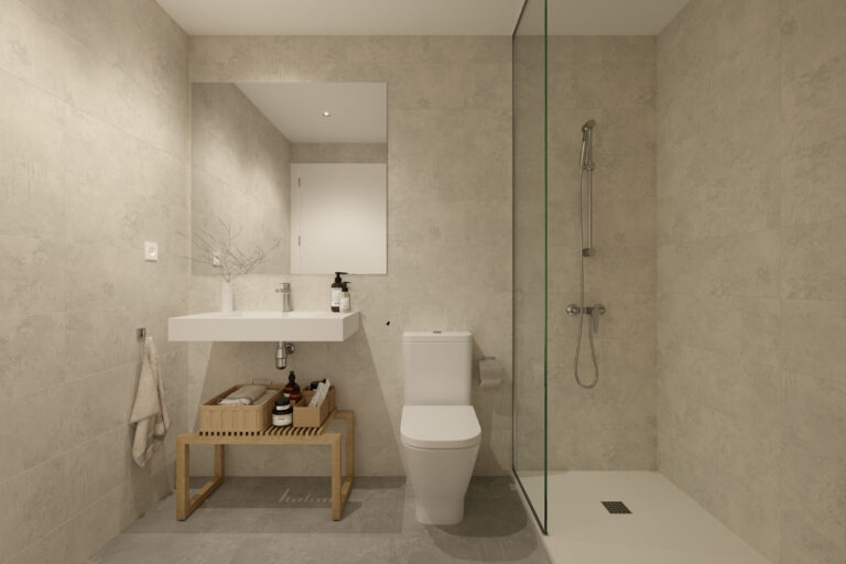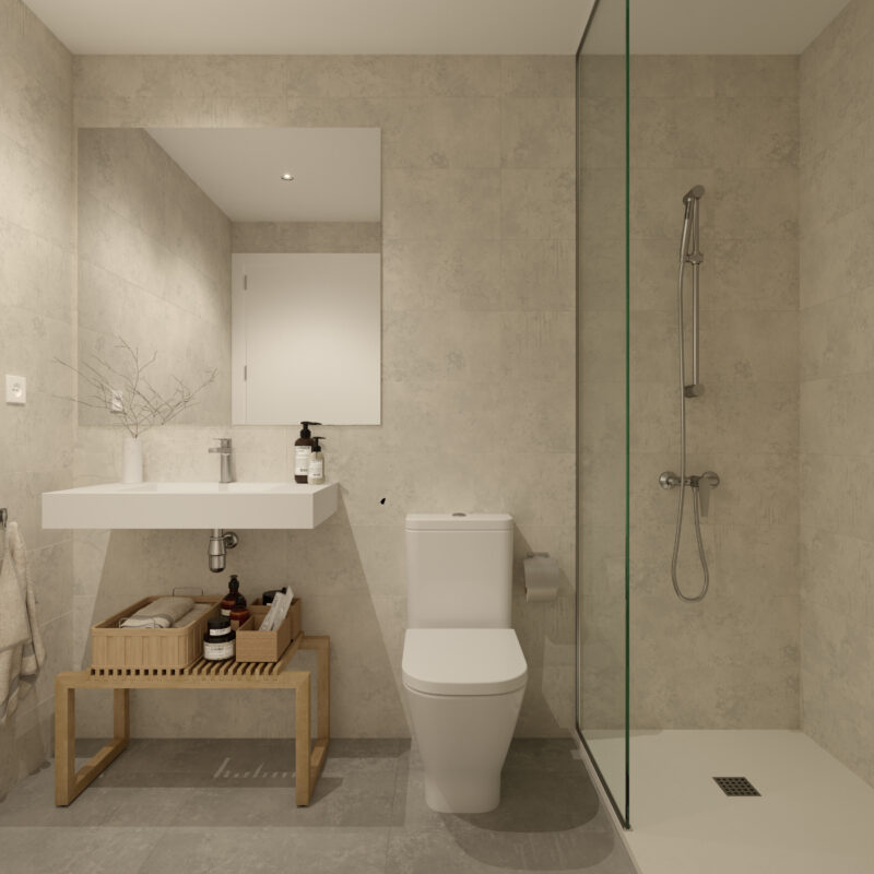 Un espacio privado para tu bienestar. Baños con acabados modernos y elegantes, donde cada detalle está pensado para tu comodidad.