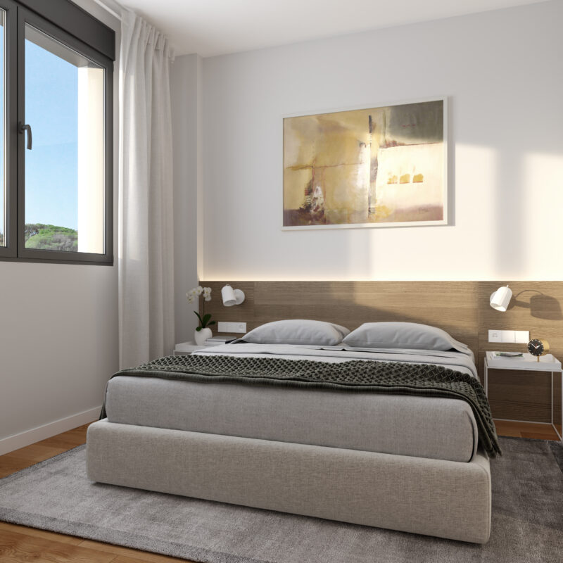 Un espacio de descanso que invita al confort. Habitaciones pensadas para tu bienestar, con acabados de alta calidad y diseño moderno. Despierta cada día en tu nuevo hogar Metrovacesa.