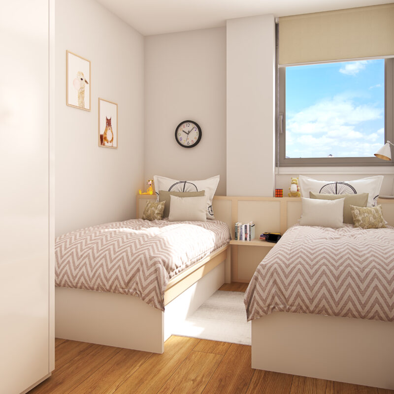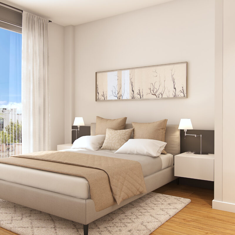 Un espacio de descanso que invita al confort. Habitaciones pensadas para tu bienestar, con acabados de alta calidad y diseño moderno. Despierta cada día en tu nuevo hogar Metrovacesa.