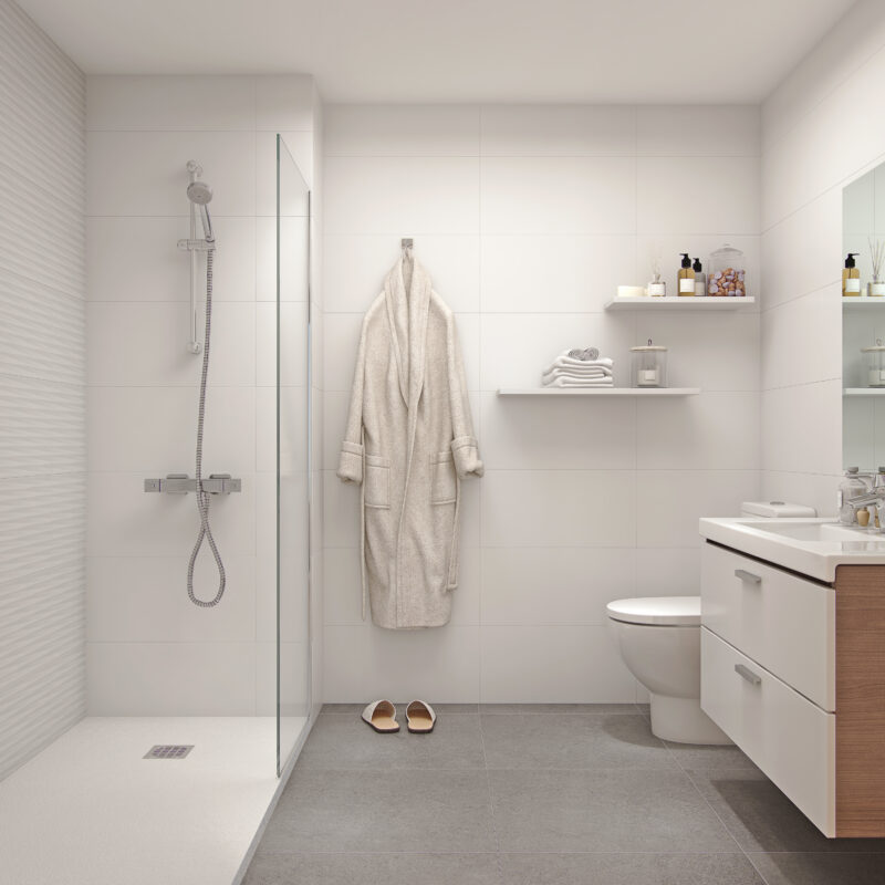 Un espacio privado para tu bienestar. Baños con acabados modernos y elegantes, donde cada detalle está pensado para tu comodidad.