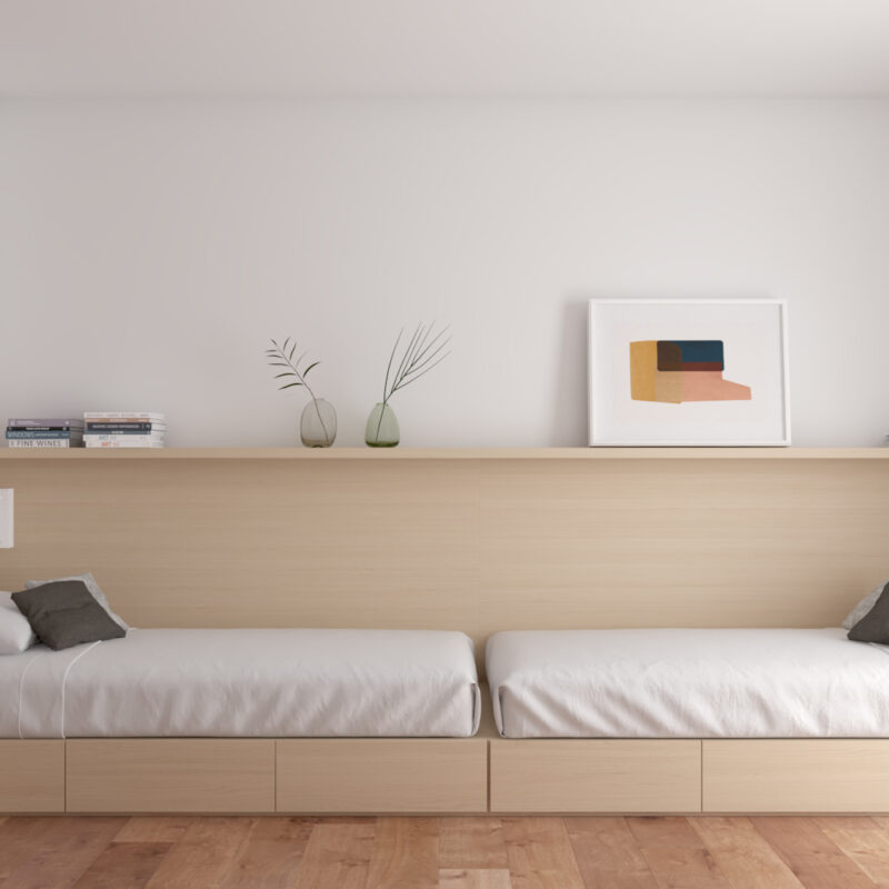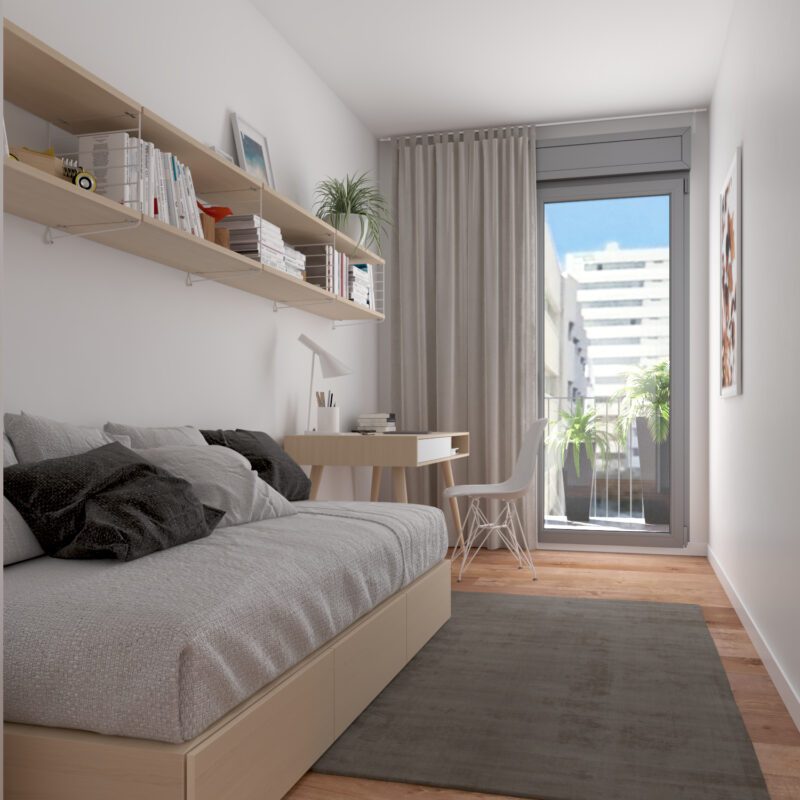Un espacio de descanso que invita al confort. Habitaciones pensadas para tu bienestar, con acabados de alta calidad y diseño moderno. Despierta cada día en tu nuevo hogar Metrovacesa.