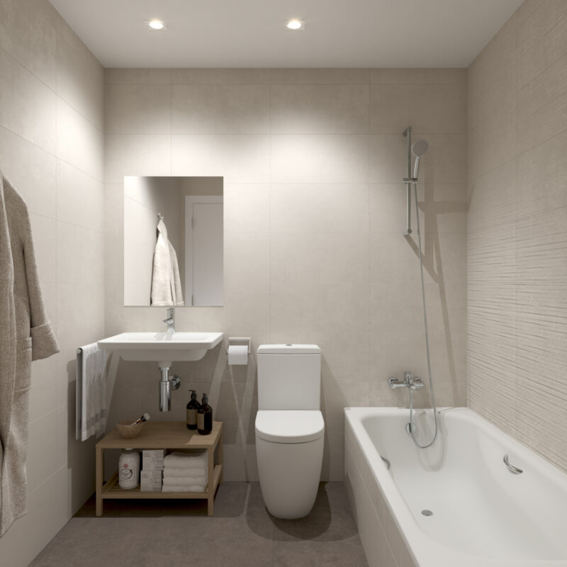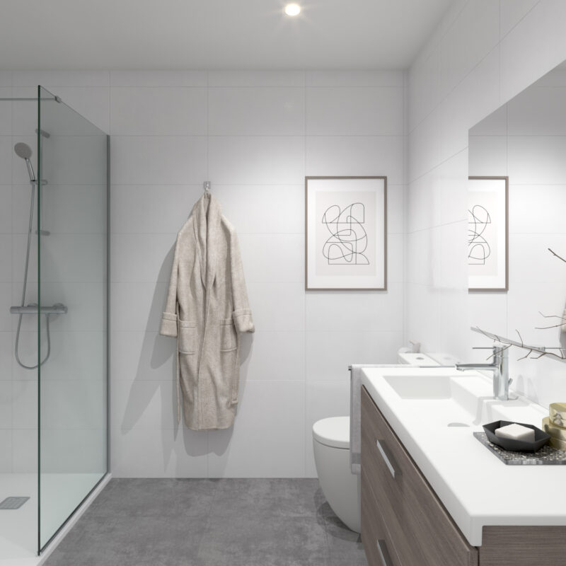 Un espacio privado para tu bienestar. Baños con acabados modernos y elegantes, donde cada detalle está pensado para tu comodidad.