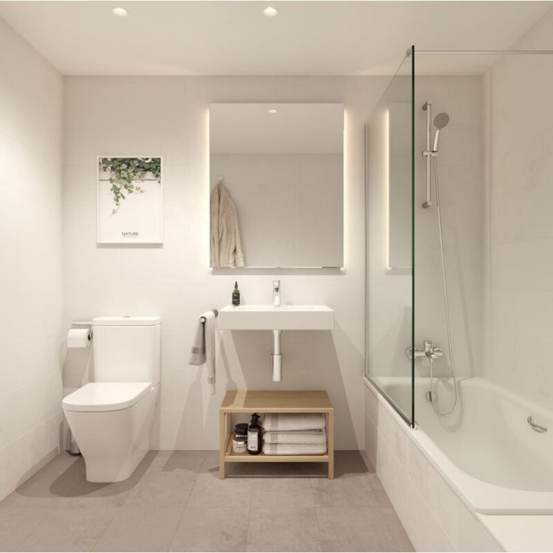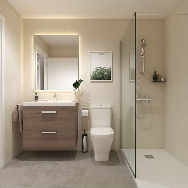 Un espacio privado para tu bienestar. Baños con acabados modernos y elegantes, donde cada detalle está pensado para tu comodidad.