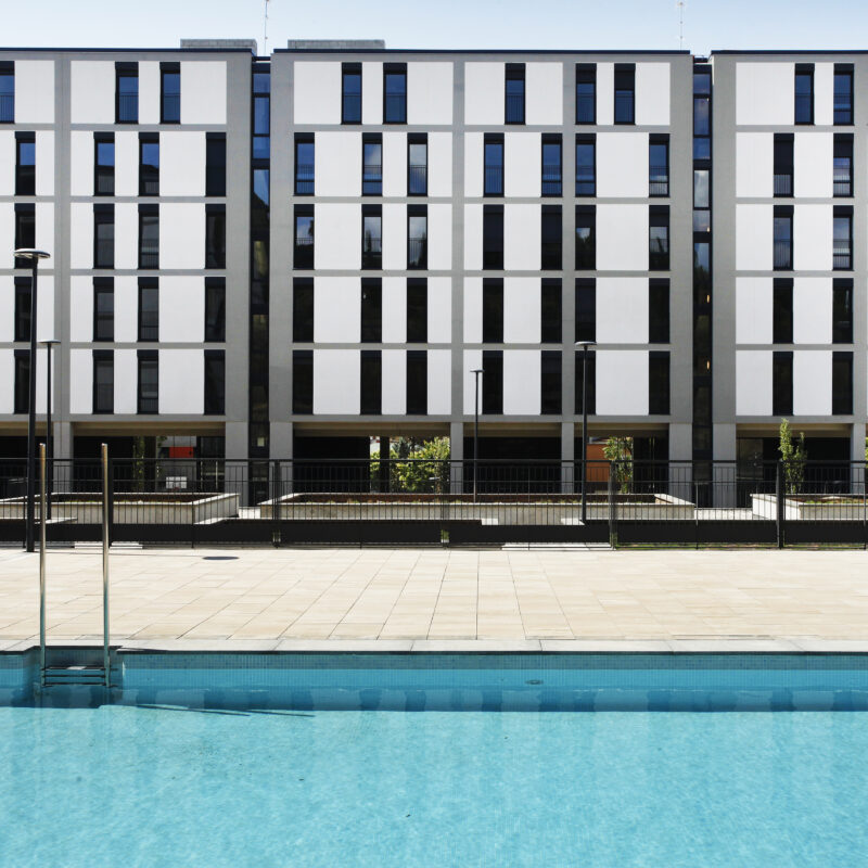 Su diseño arquitectónico original y elegante, integra en dos edificios un bloque lineal y una torre. Destacan los jardines comunitarios, la piscina y una zona de juegos para los más pequeños.