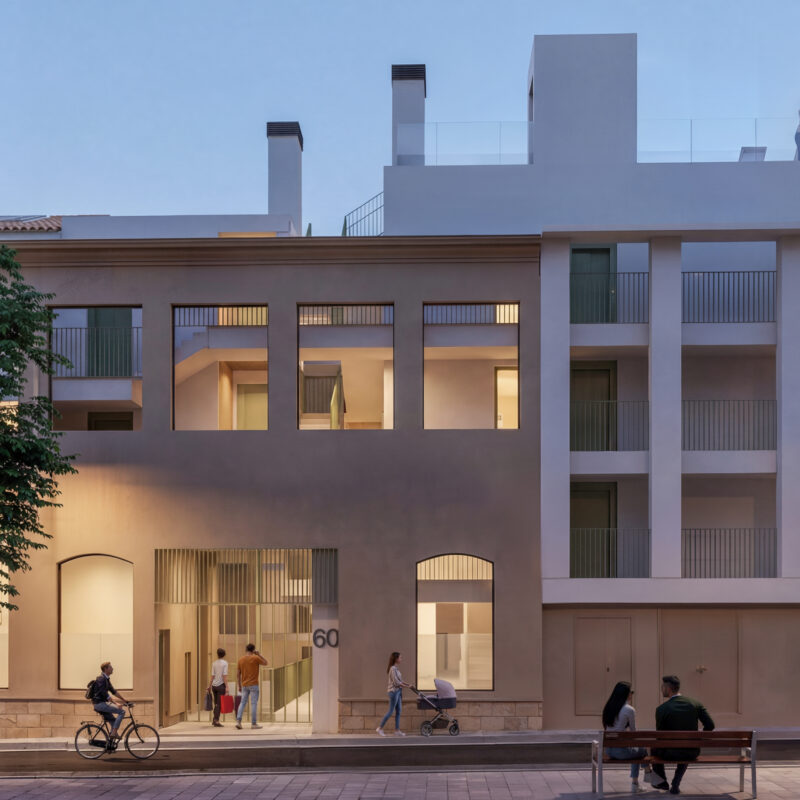 En una ubicación estratégica de Sabadell nace Alemanya 60, un conjunto residencial de 94 viviendas formado por cuatro edificios plurifamiliares, que combina la rehabilitación de un edificio histórico con tres bloques de obra nueva.