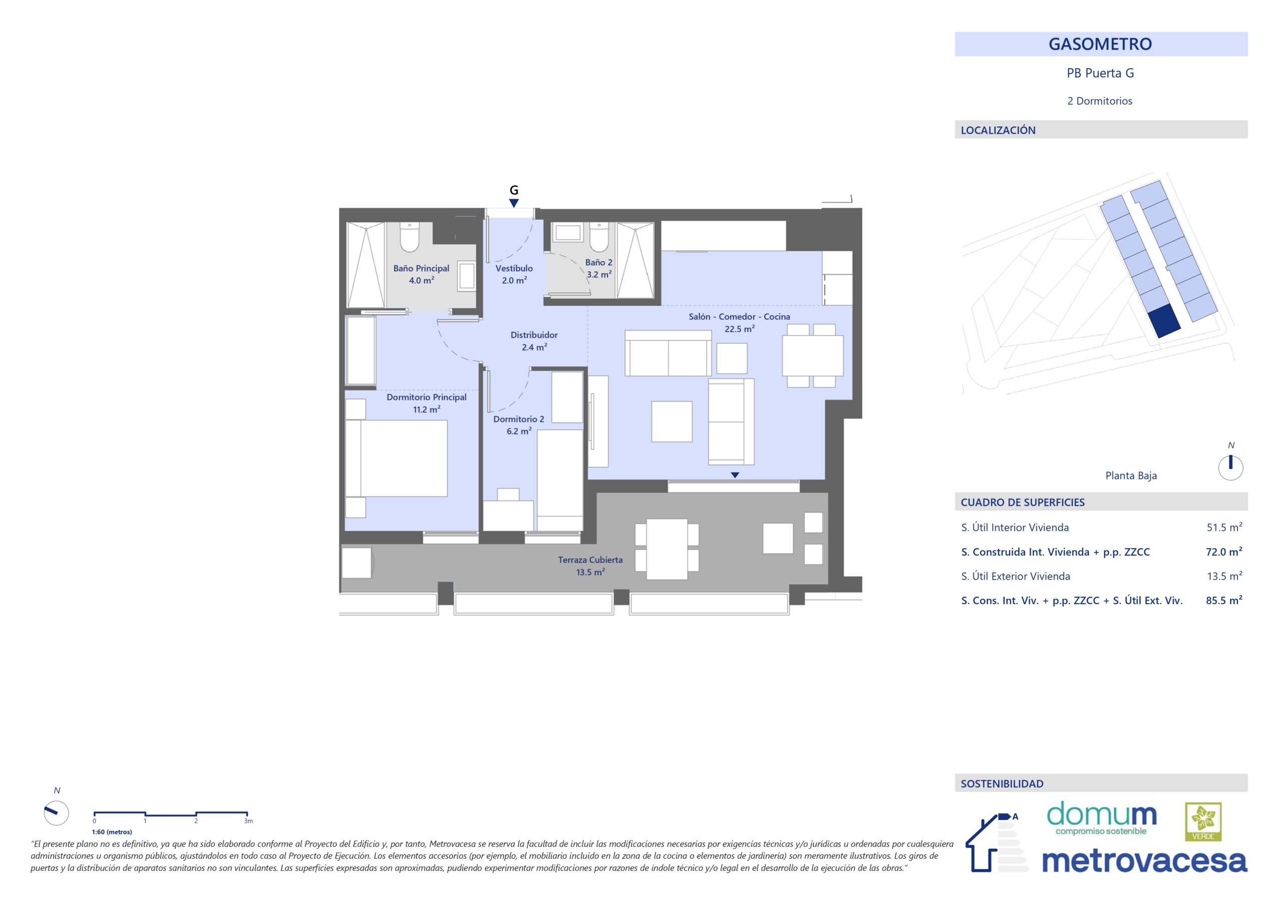 * El ahorro económico y energético mostrado en esta simulación es puramente informativo, por lo tanto, Metrovacesa no tiene ninguna responsabilidad ni obligación sobre dichos resultados. El cálculo se ha hecho basado en los datos incluidos en el documento "Calificación de la eficiencia energética de los edificios" versión 1.1 de Noviembre de 2015, publicado por el IDAE. Ministerio de Industria, Energía y Turismo.