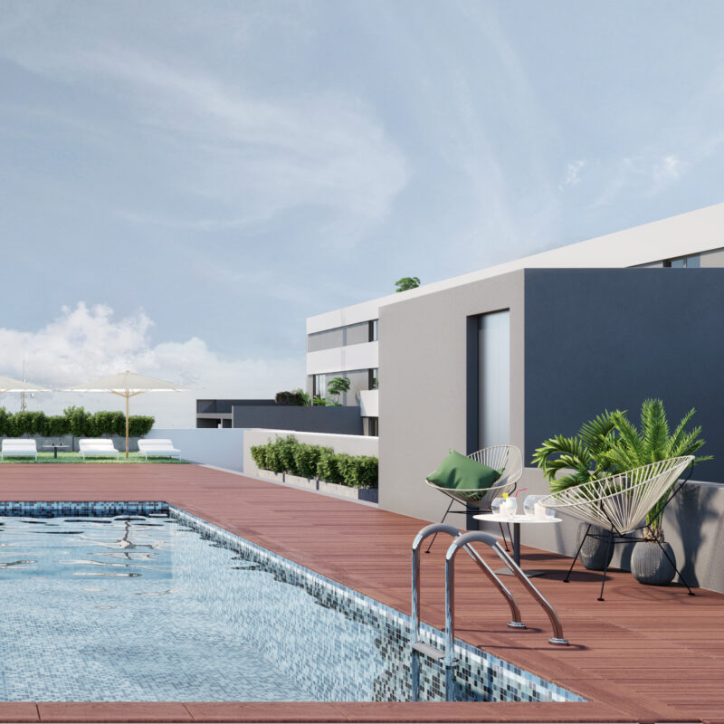 Un oasis de tranquilidad. Relájate y disfruta del sol junto a nuestra piscina, diseñada para que cada día se sienta como vacaciones. Calidad de vida en tu nuevo hogar.