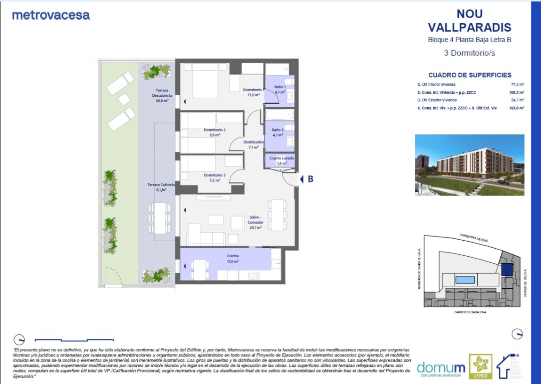 Nou Vallparadís es el nuevo proyecto de viviendas de Metrovacesa en Terrassa. Con una ubicación privilegiada, en el barrio Segle XX y en pleno Parc de Vallparadís, cuenta con un total de 111 viviendas de 1, 2, 3 y 4 dormitorios, una amplia zona comunitaria con zonas verdes, zona de juegos infantiles y piscina.