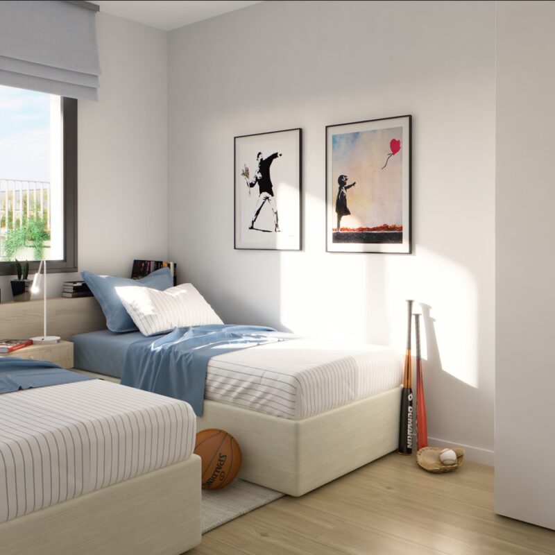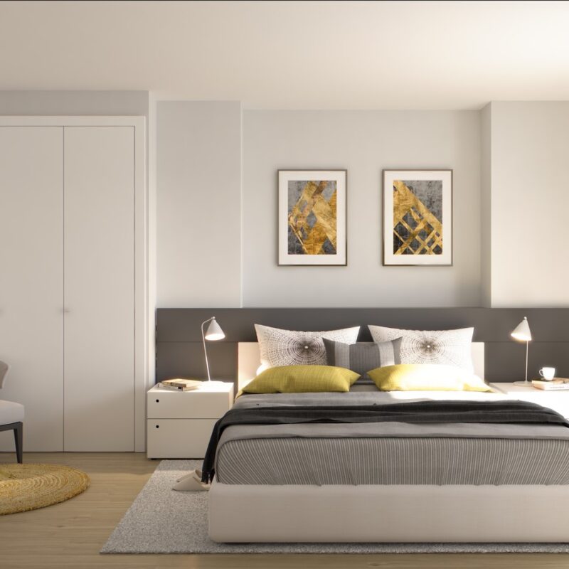 Un espacio de descanso que invita al confort. Habitaciones pensadas para tu bienestar, con acabados de alta calidad y diseño moderno. Despierta cada día en tu nuevo hogar Metrovacesa.