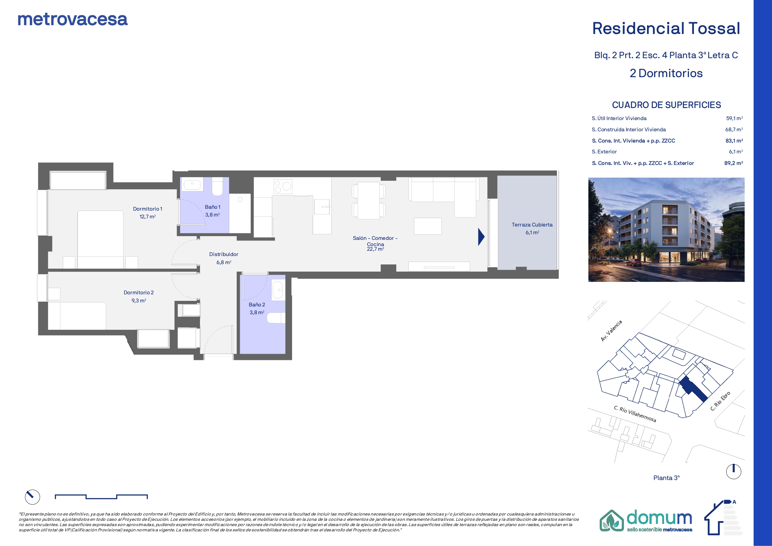| 3 | 2 | 2 | 89.2 * | 6.1 | Ver plano | 201.716 € *** |