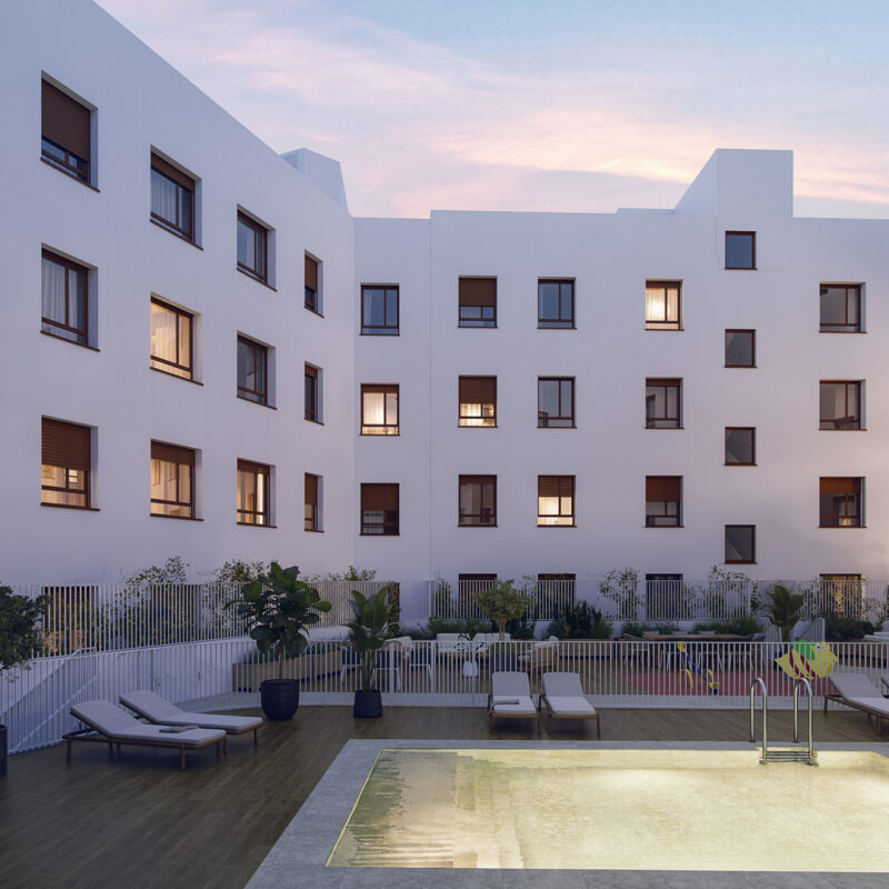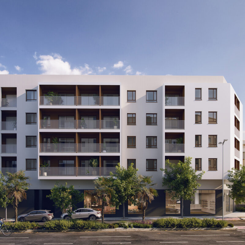 La promoción cuenta con viviendas de 1, 2, 3 y 4 dormitorios, todas ellas con terraza, plaza de garaje y trastero, además de locales comerciales y completas zonas comunes. Un proyecto contemporáneo que combina eficiencia, bienestar y estilo de vida mediterráneo.