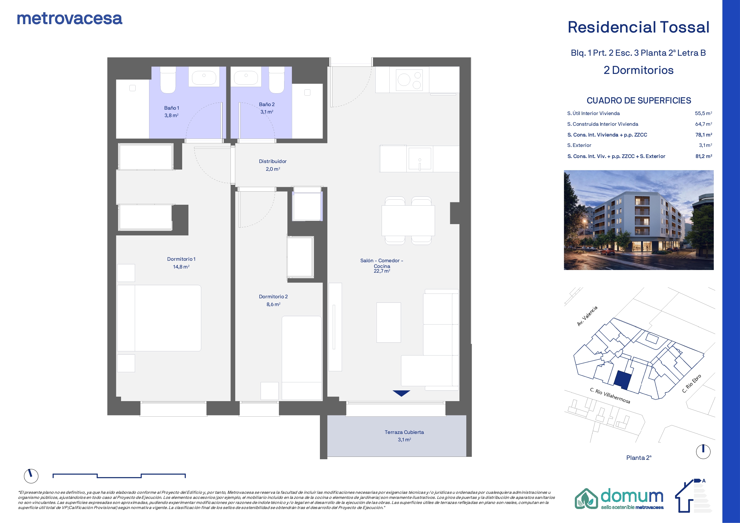 | 2 | 2 | 2 | 81.2 * | 3.1 | Ver plano | 186.941 € *** |