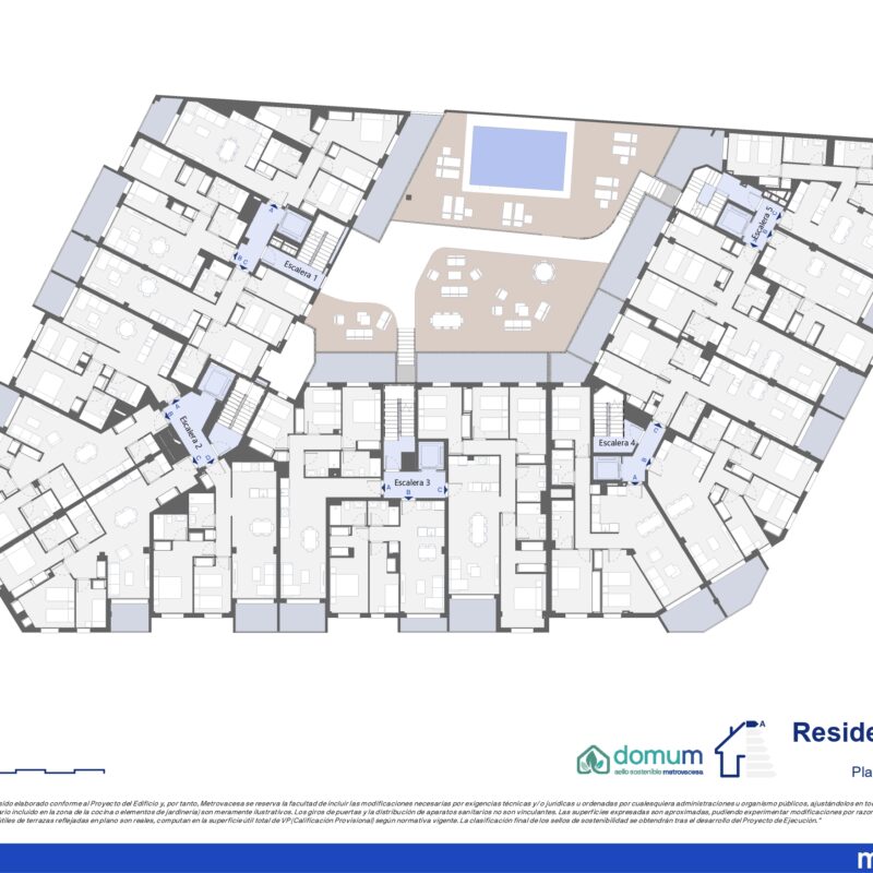 Edificio de 64 viviendas de 1, 2, 3, y 4 dormitorios, 3 locales comerciales, 74 plazas de garaje y 64 trasteros. Dispone de local social para tus celebraciones y eventos, piscina y zonas de juegos infantiles en planta primera.