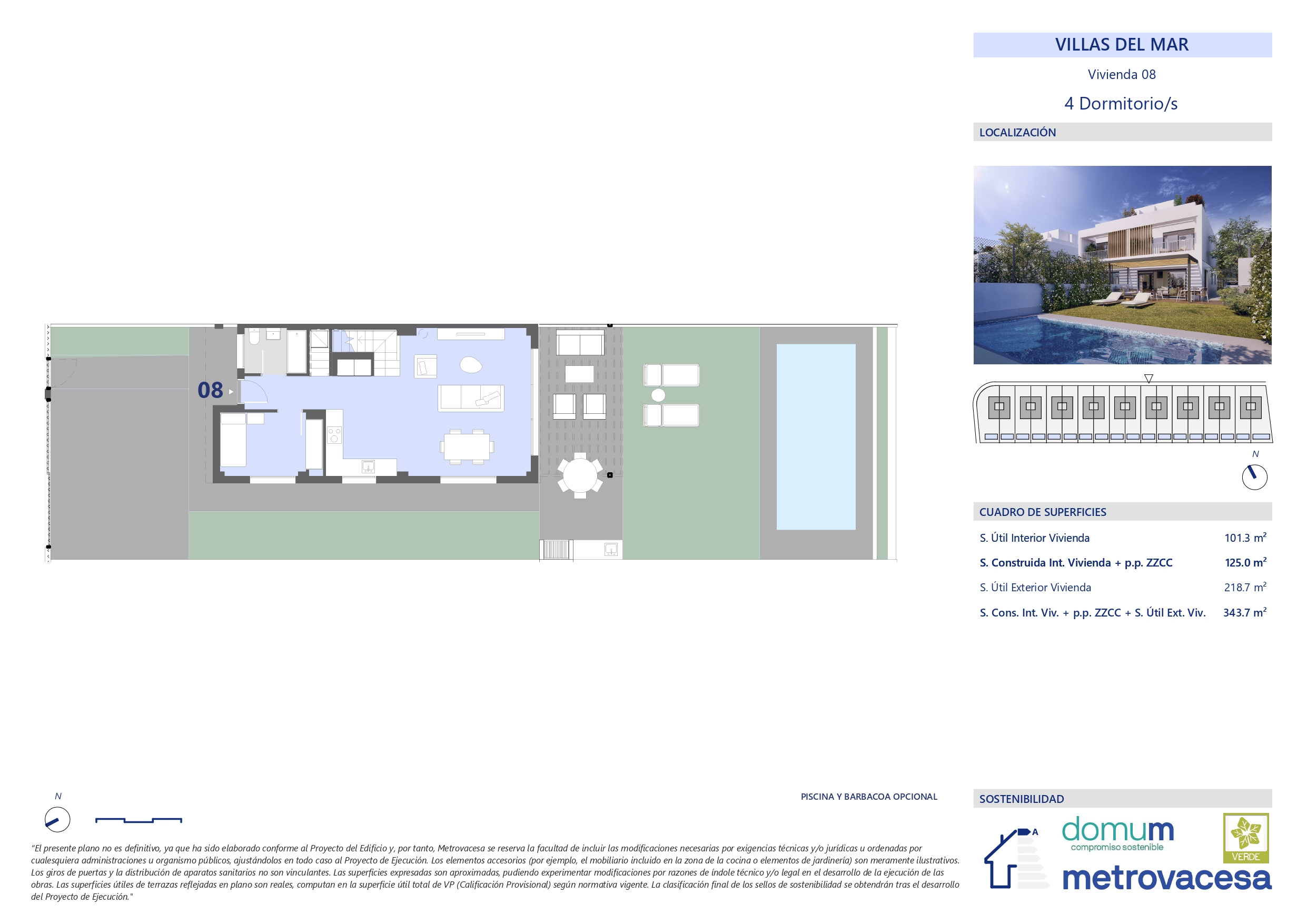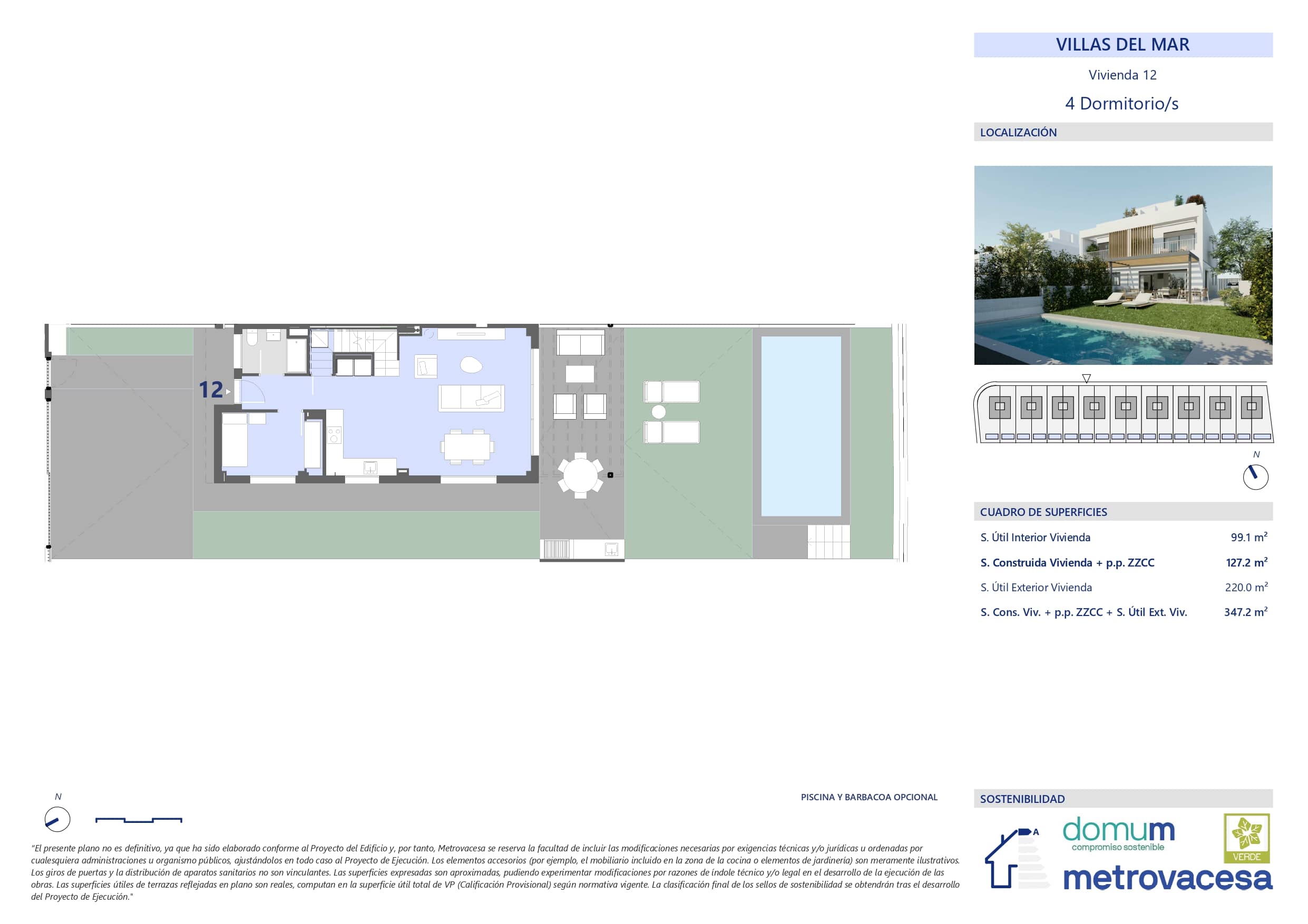 Formada por un total de 18 villas pareadas de 4 dormitorios, destacando por sus viviendas luminosas, materiales de alta calidad y eficiencia energética para un hogar sostenible.