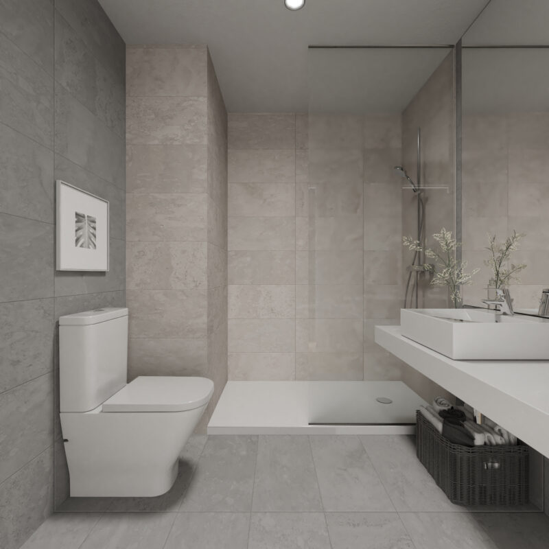 Un espacio privado para tu bienestar. Baños con acabados modernos y elegantes, donde cada detalle está pensado para tu comodidad.