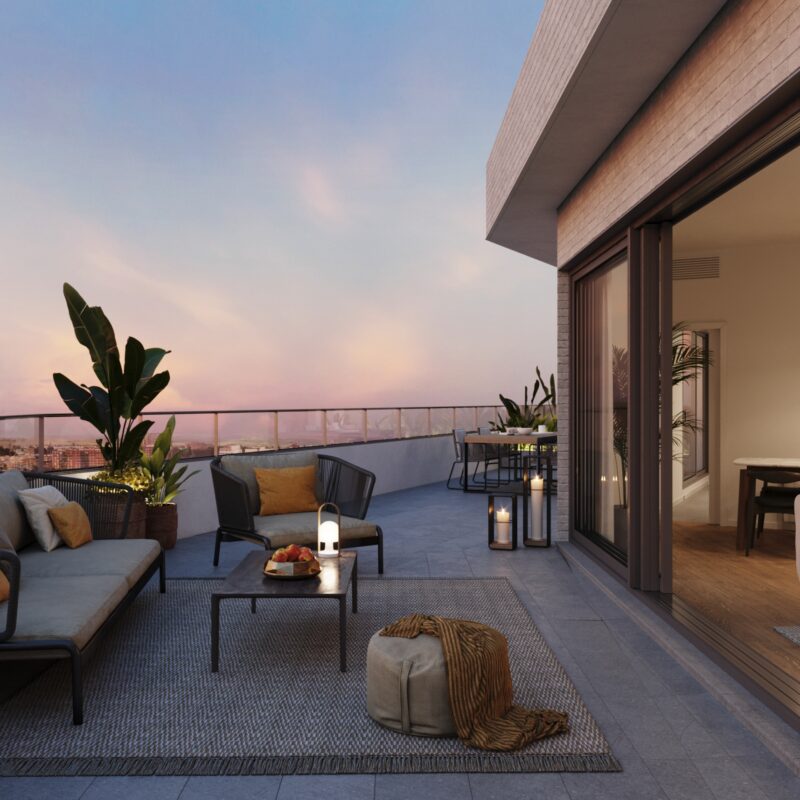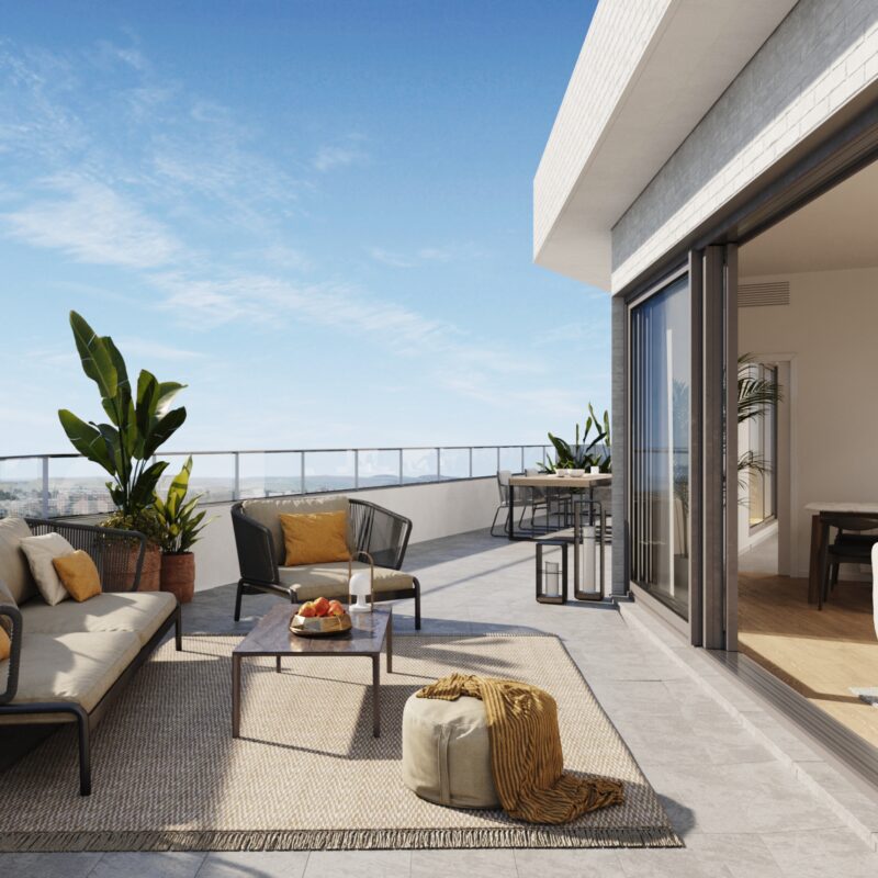 Tu rincón al aire libre. Vive el confort en magníficas terrazas diseñadas para brindarte el espacio ideal donde desconectar y relajarte. El lugar perfecto para disfrutar del aire fresco, convirtiendo cada momento en una experiencia de bienestar.