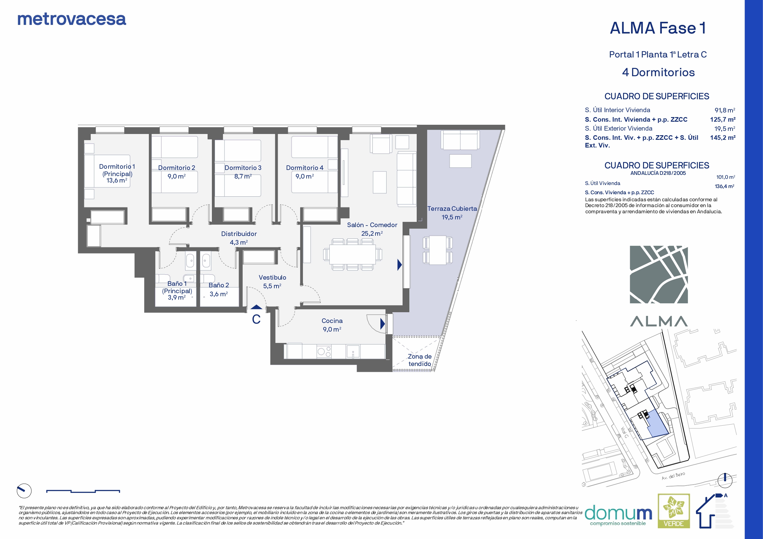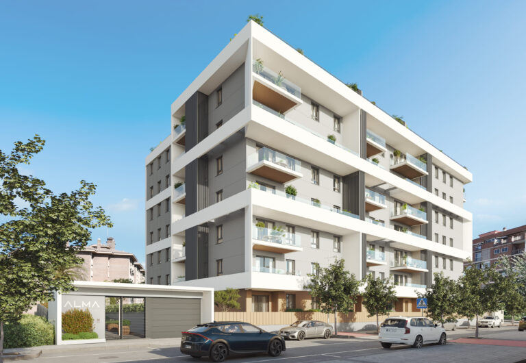 ALMA, en su fase 1, presenta 59 viviendas en tipologías de 2, 3 y 4 dormitorios, todas equipadas con aparcamiento y trastero en el sótano. Espacios diseñados con un toque moderno, bajos con jardines y áticos donde disfrutar de vistas despejadas.