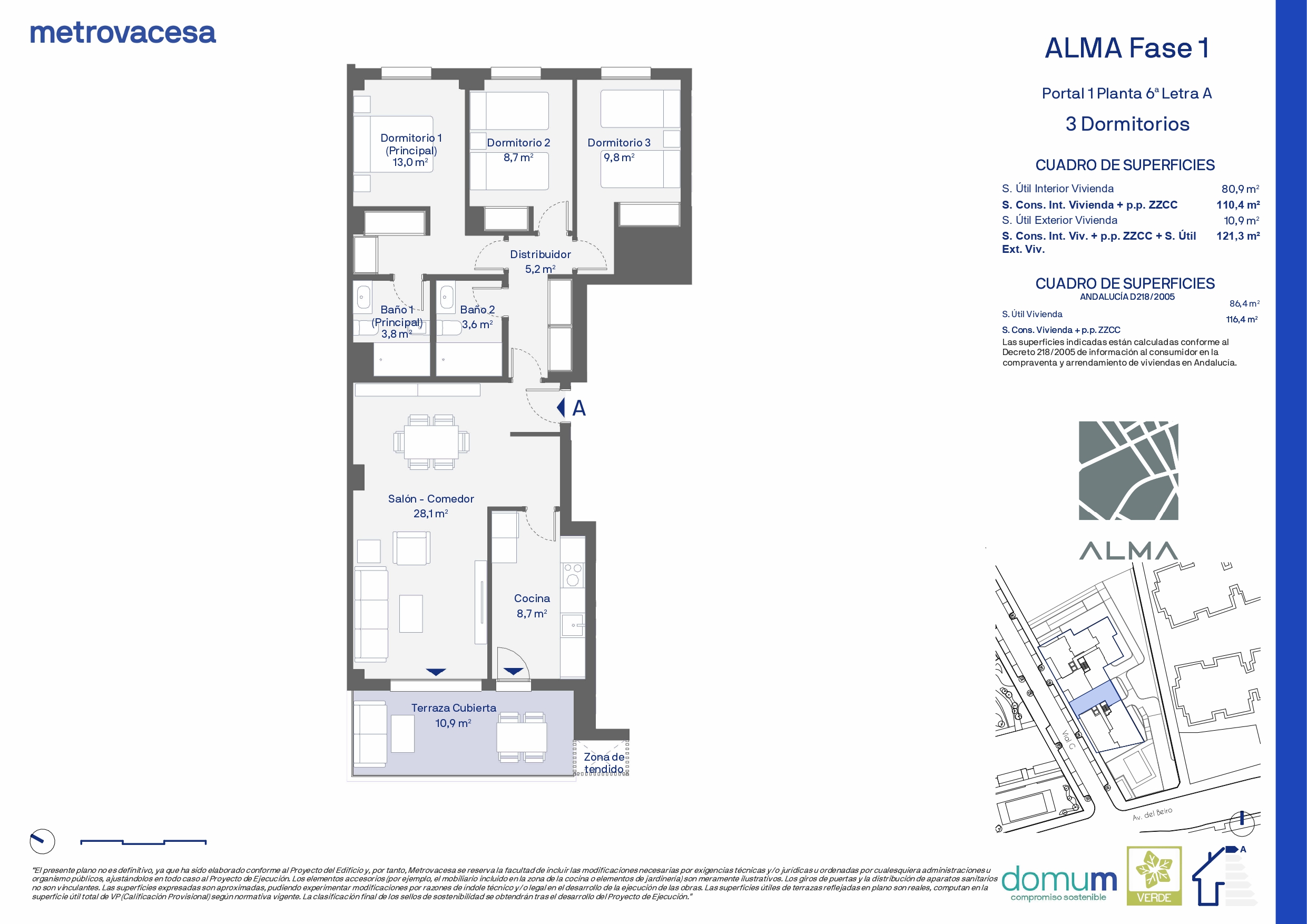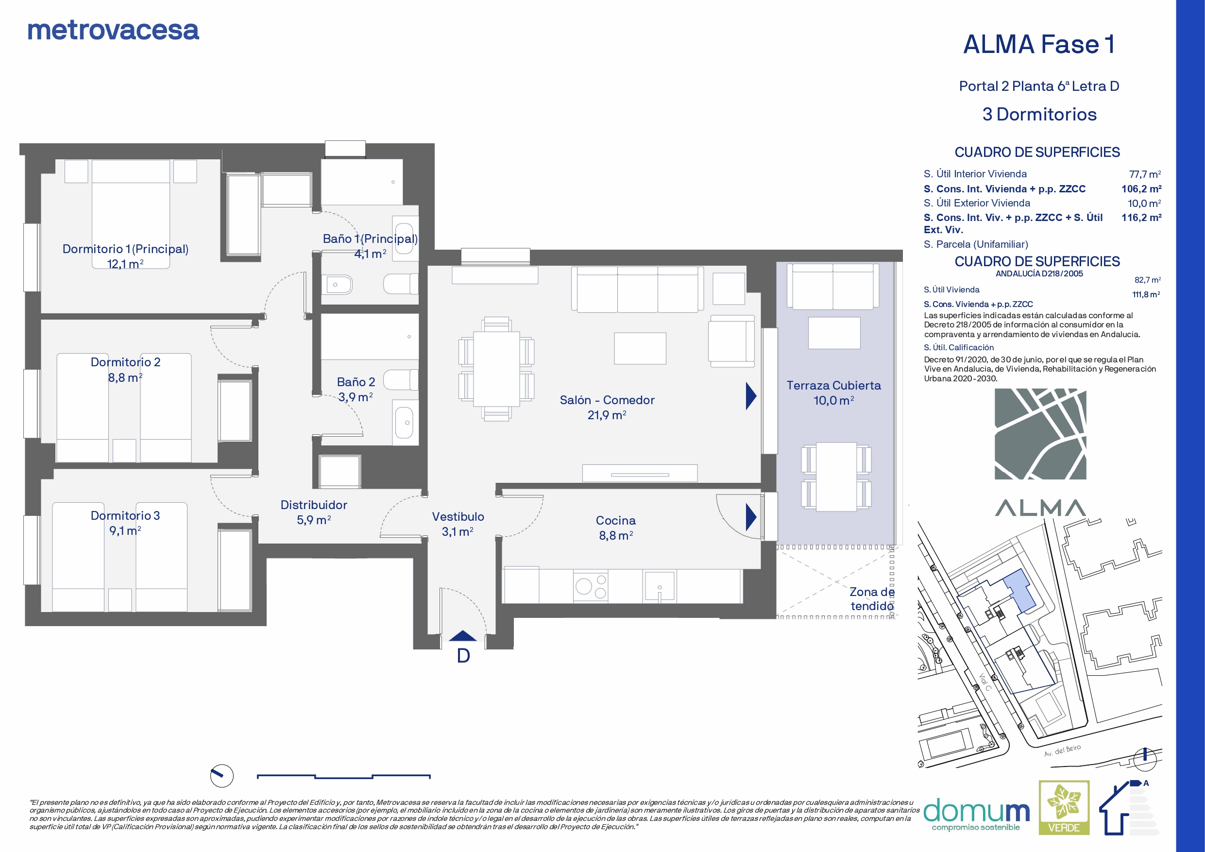 * El ahorro económico y energético mostrado en esta simulación es puramente informativo, por lo tanto, Metrovacesa no tiene ninguna responsabilidad ni obligación sobre dichos resultados. El cálculo se ha hecho basado en los datos incluidos en el documento "Calificación de la eficiencia energética de los edificios" versión 1.1 de Noviembre de 2015, publicado por el IDAE. Ministerio de Industria, Energía y Turismo.
