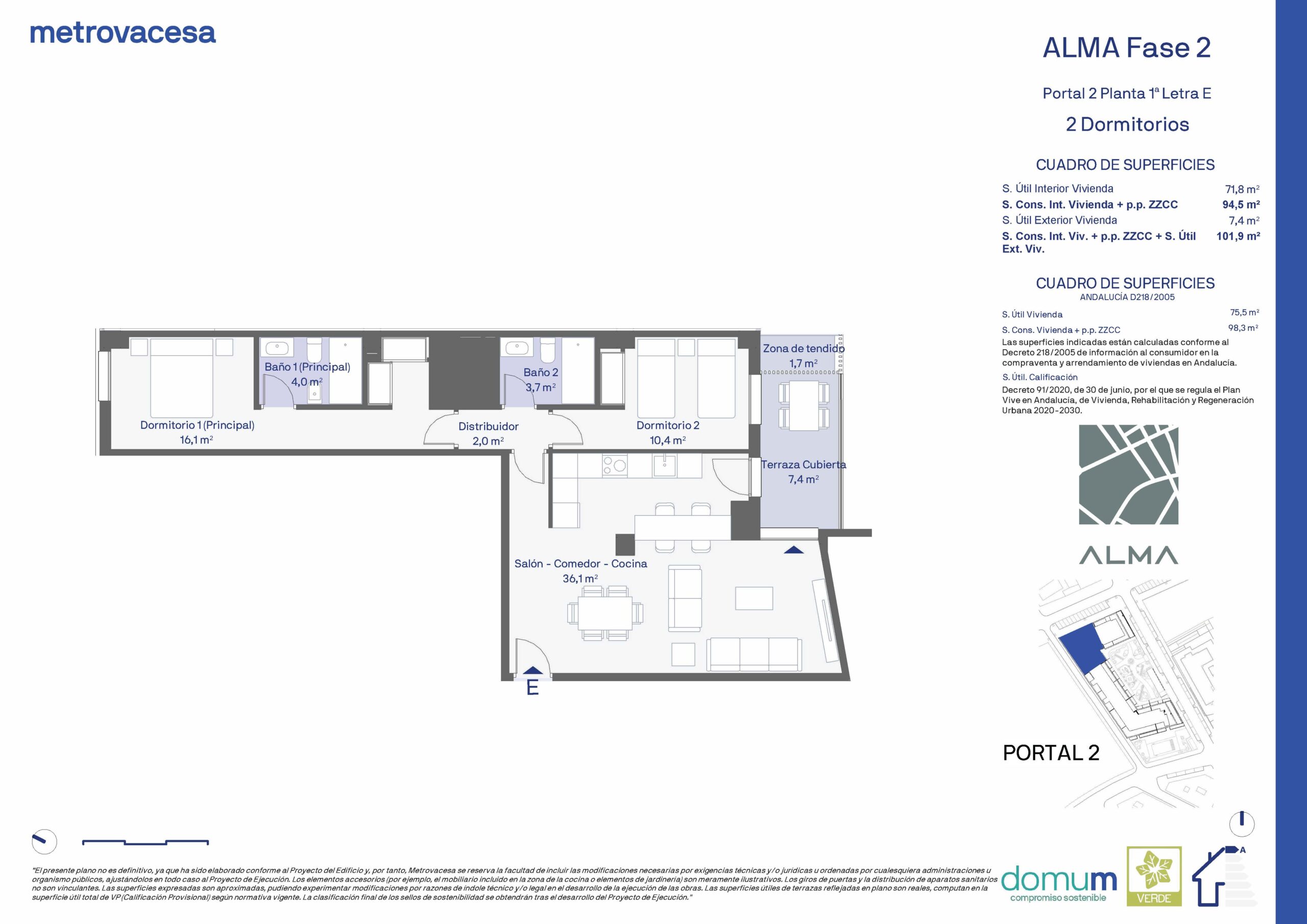 ALMA, en su fase 2, presenta 134 viviendas en tipologías de 1, 2, 3 y 4 dormitorios, todas equipadas con aparcamiento y trastero en el sótano. Espacios diseñados con un toque moderno, bajos con jardines y áticos donde disfrutar de vistas despejadas.