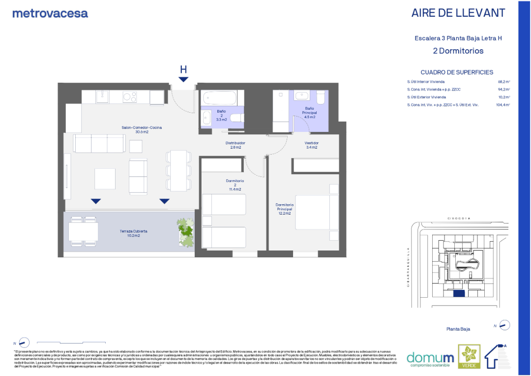 | BJ | 2 | 2 | 105.8 * | 10.2 | Ver plano | 412.000 € ** |