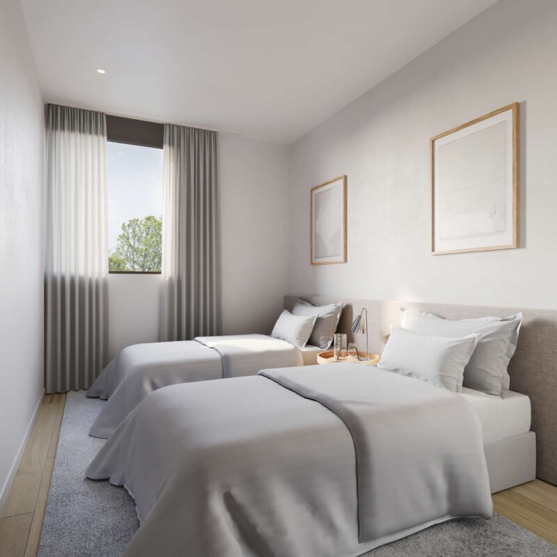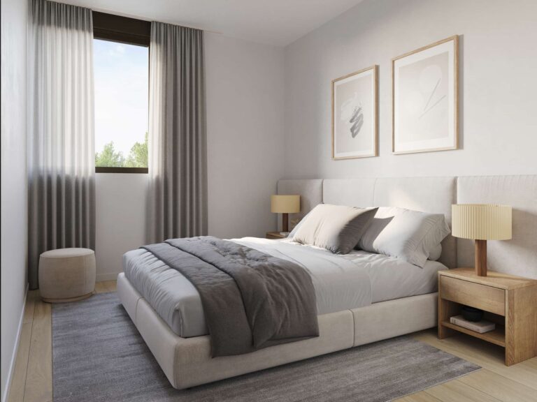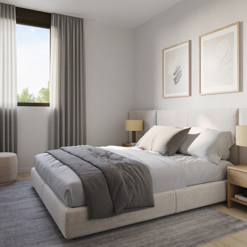 Un espacio de descanso que invita al confort. Habitaciones pensadas para tu bienestar, con acabados de alta calidad y diseño moderno. Despierta cada día en tu nuevo hogar Metrovacesa.